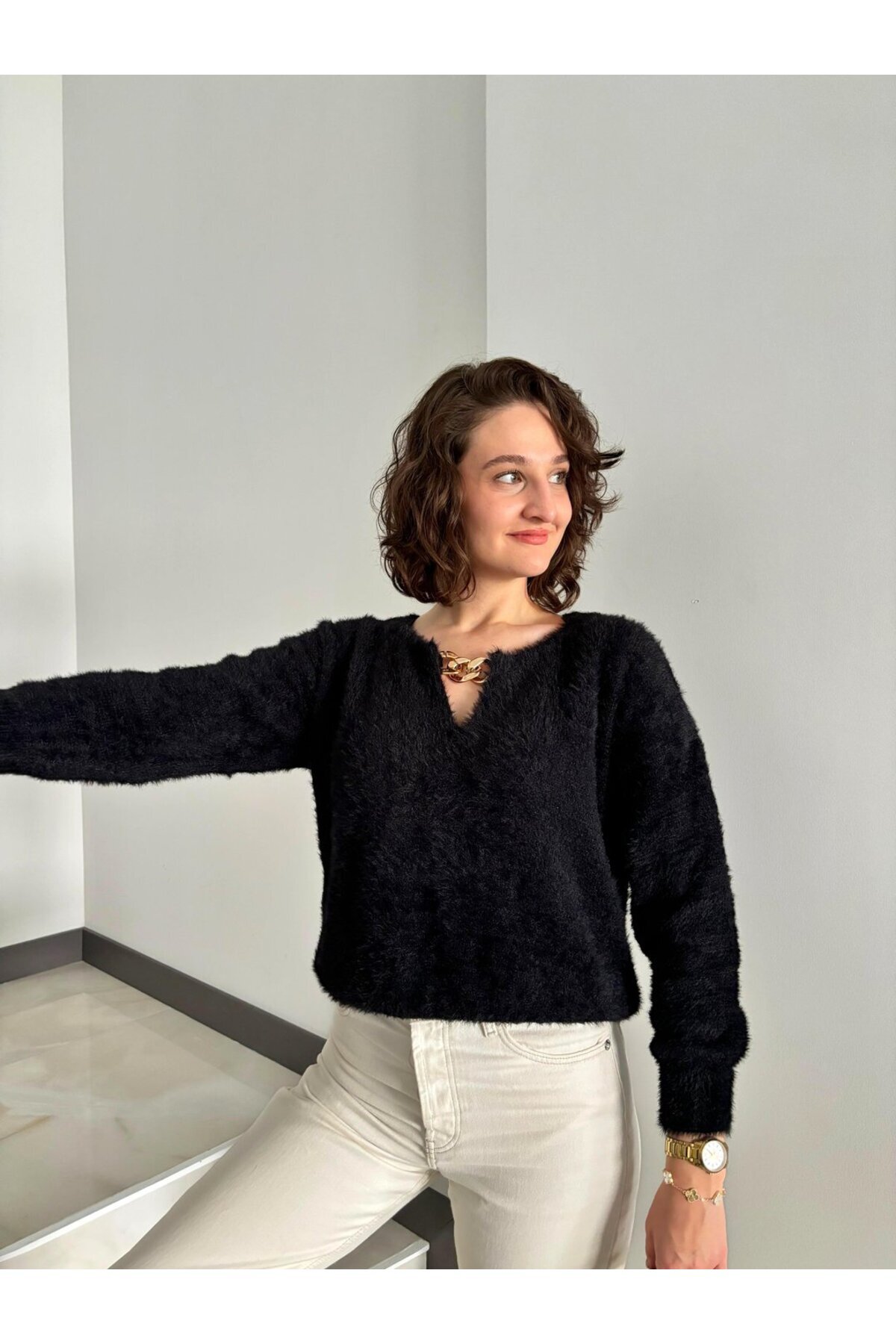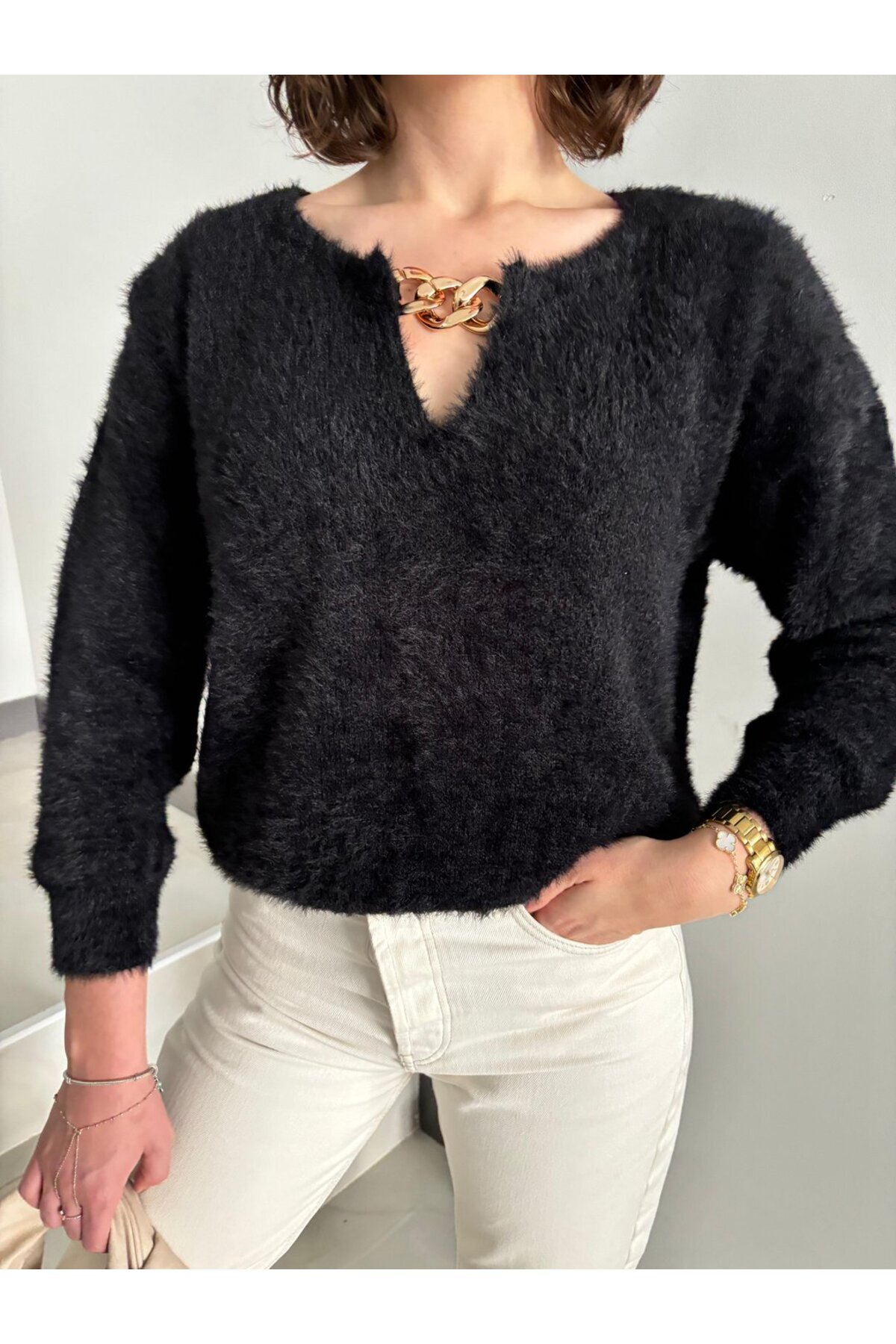 Yakası Zincirli Yumoş Triko Kazak Yakası Zincirli Yumoş Triko Kazak SK-11616 Standart