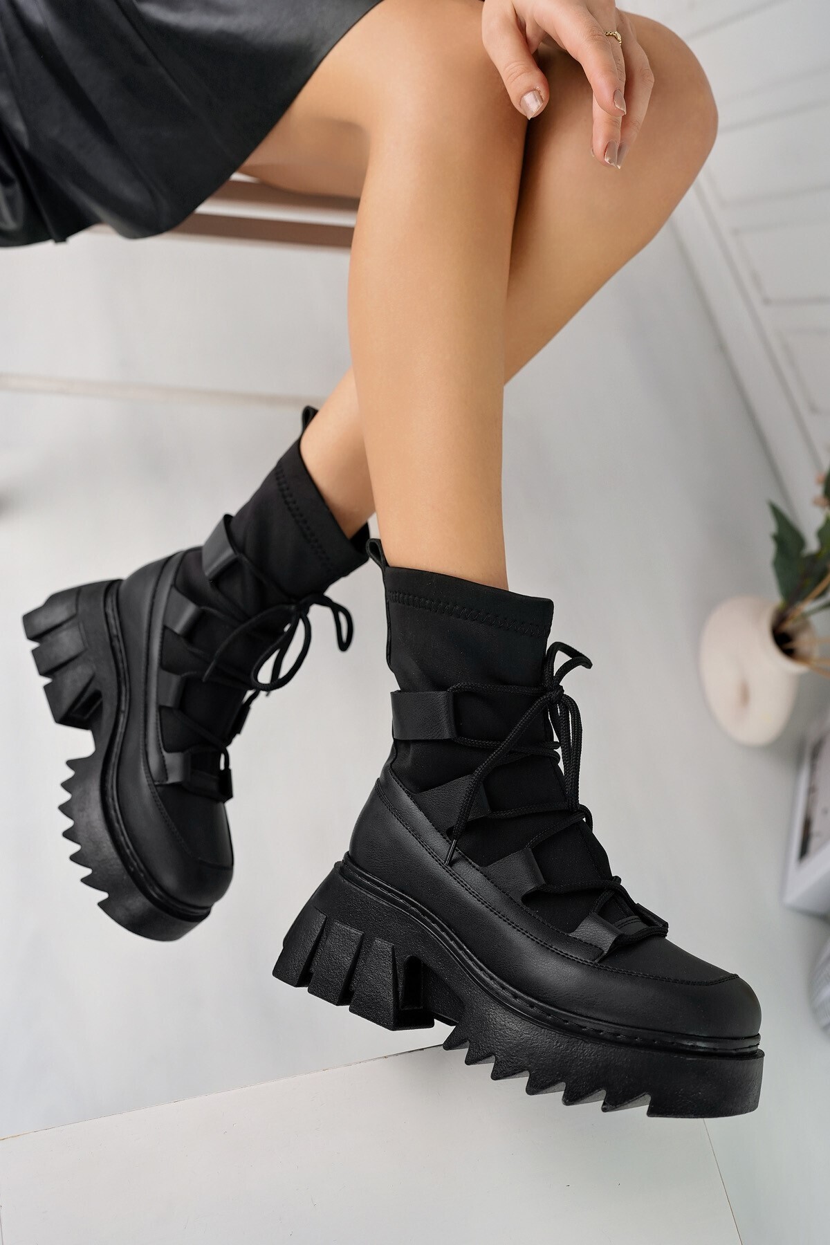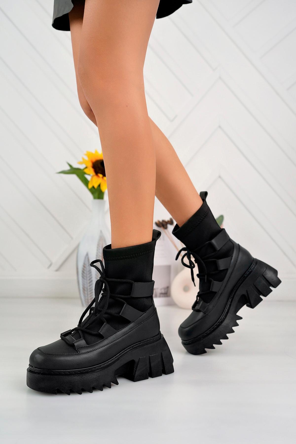 Kadın Strech Bağcıklı KAlın Tabanlı Moda Bot ALD1700-1700 Kadın Strech Bağcıklı KAlın Tabanlı Moda Bot ALD1700-1700 40
