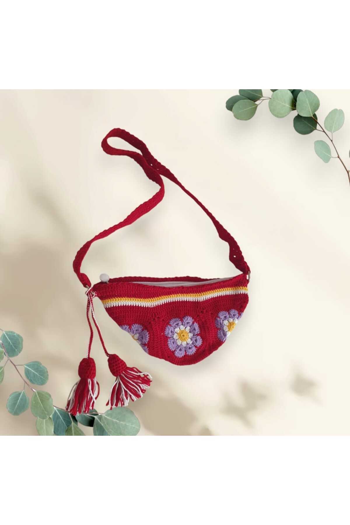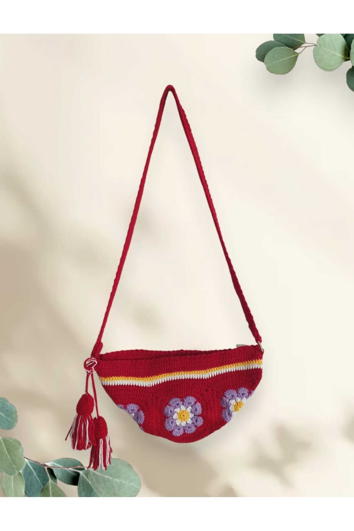 El Örgüsü Kırmızı Çiçekli Omuz Çantası El Örgüsü Kırmızı Çiçekli Omuz Çantası NEXT76 Standart