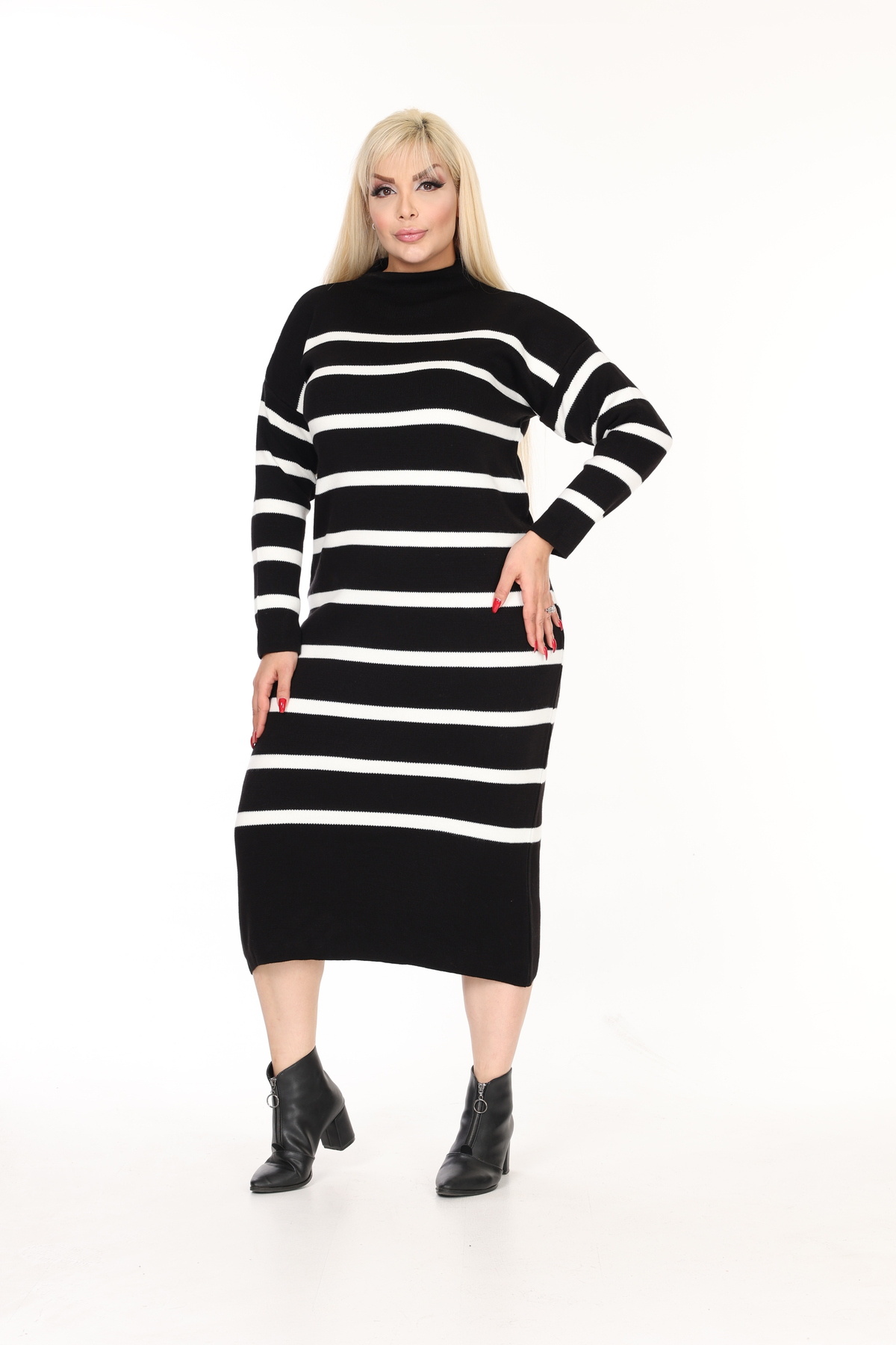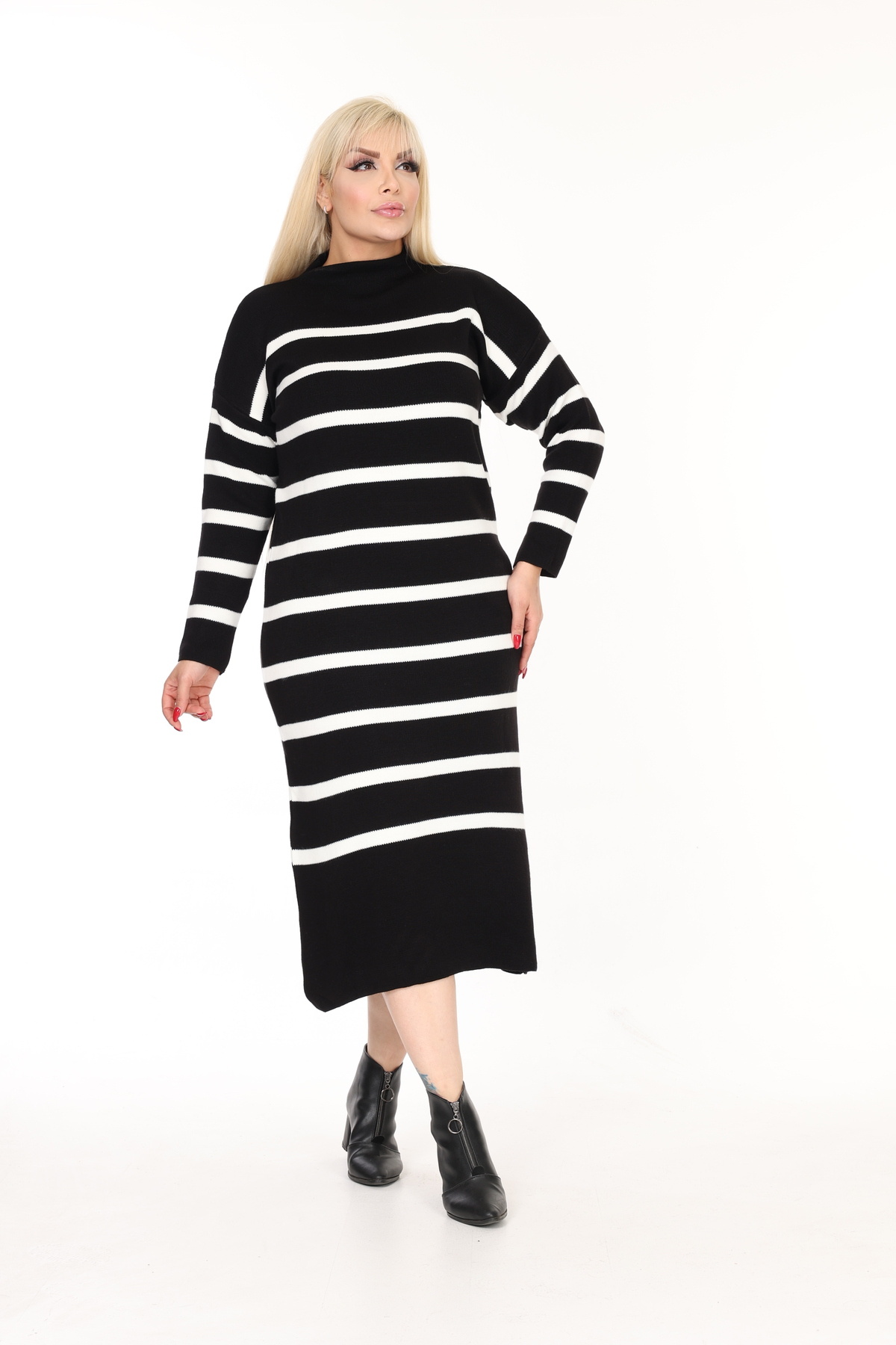 Yarım Balıkçı Yaka Çizgili Rahat Kalıp Triko Elbise Yarım Balıkçı Yaka Çizgili Rahat Kalıp Triko Elbise MJ00286 Standart
