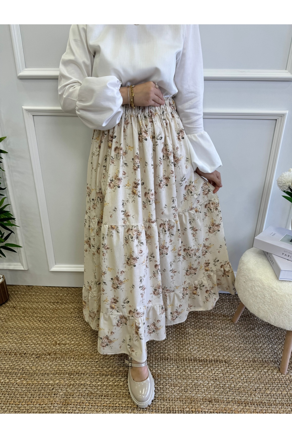 Çiçek Desenli Kat Kat Kahverengi Etek Çiçek Desenli Kat Kat Kahverengi Etek CKE-09 42