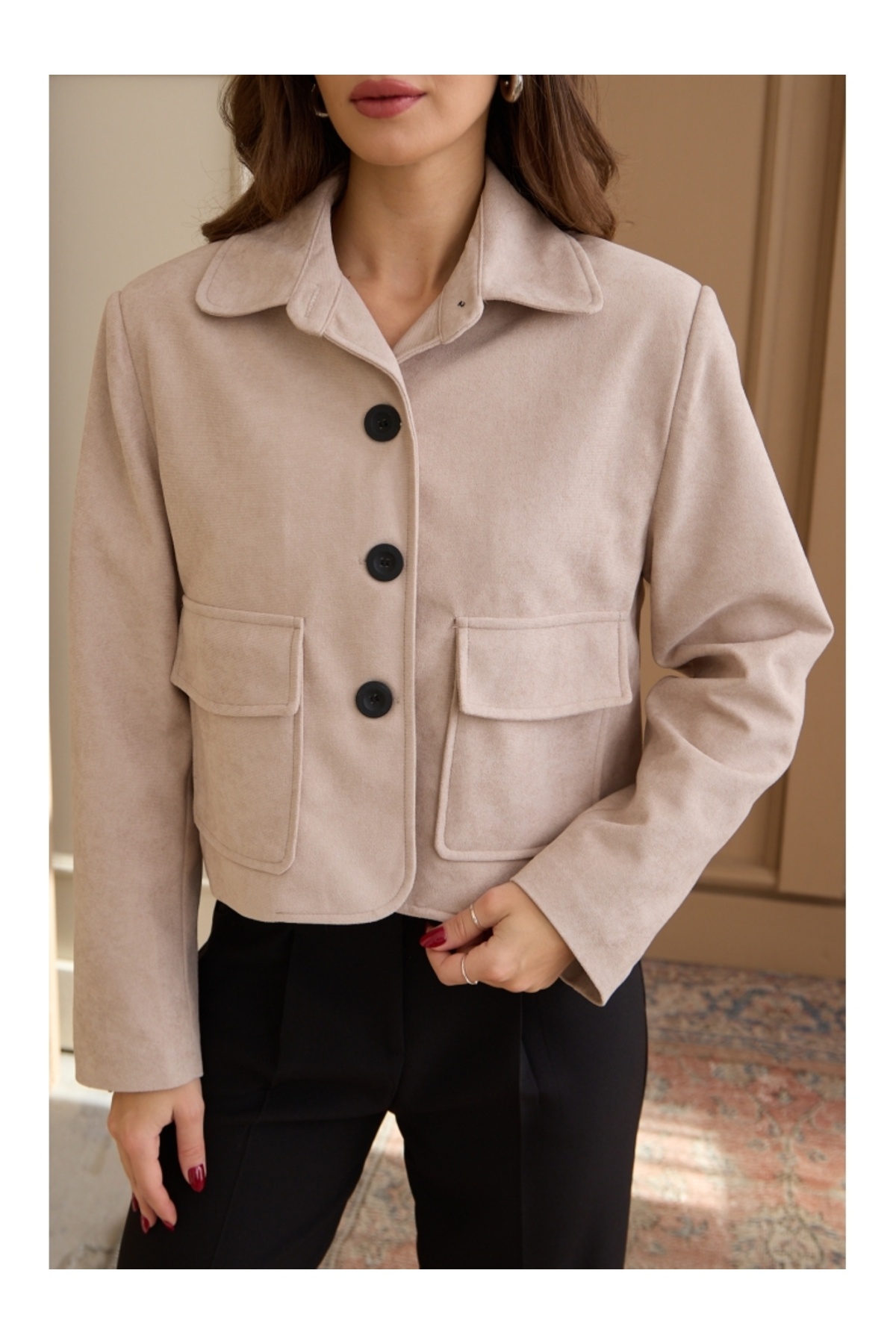 Taş Cepli Süet Kısa Ceket Taş Cepli Süet Kısa Ceket 9486 XL