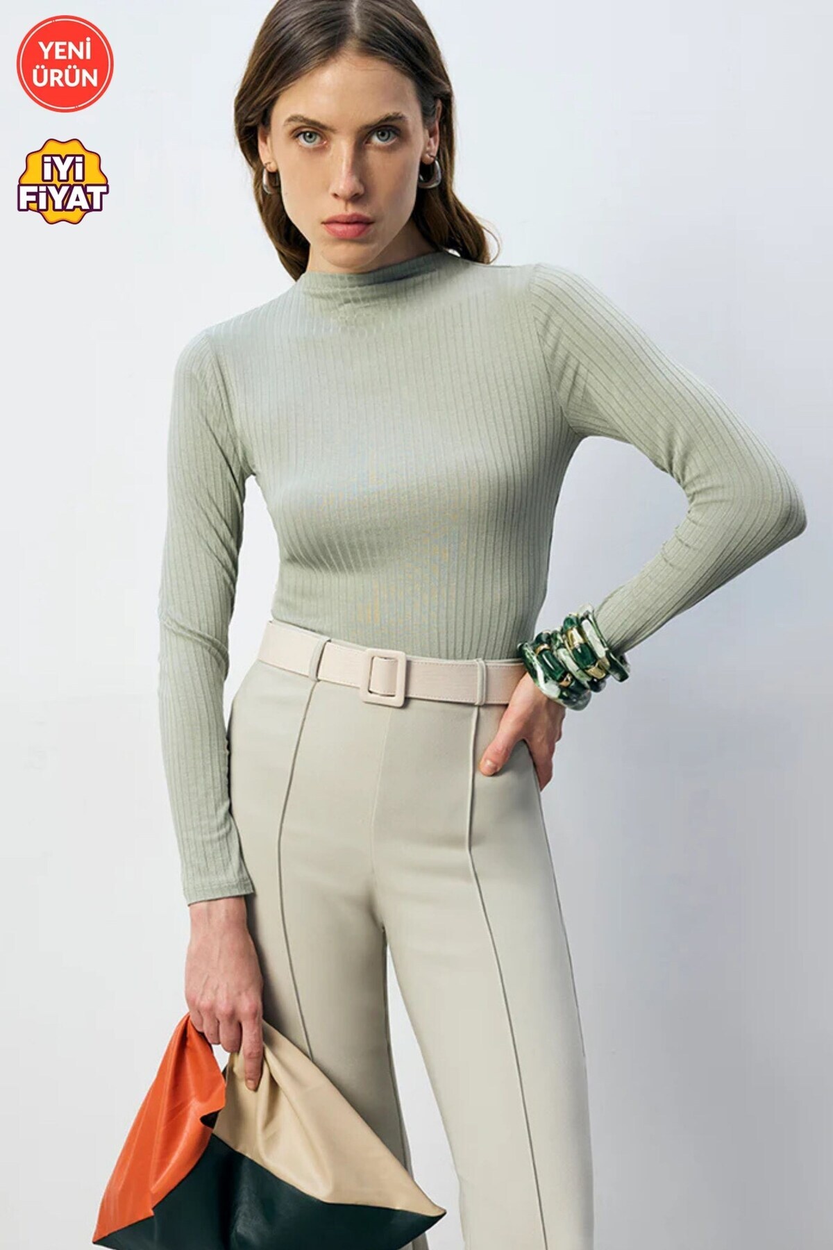 Dar Kesim Uzun Kollu Bisiklet Yaka Bodysuit Dar Kesim Uzun Kollu Bisiklet Yaka Bodysuit M1YS2FT9 2XL