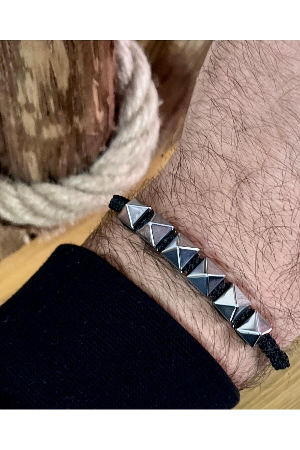 Silver Renk Trok Şeklinde Hematit Makreme Örgü İpli Unisex Bileklik Silver Renk Trok Şeklinde Hematit Makreme Örgü İpli Unisex Bileklik GNS-202620 Standart