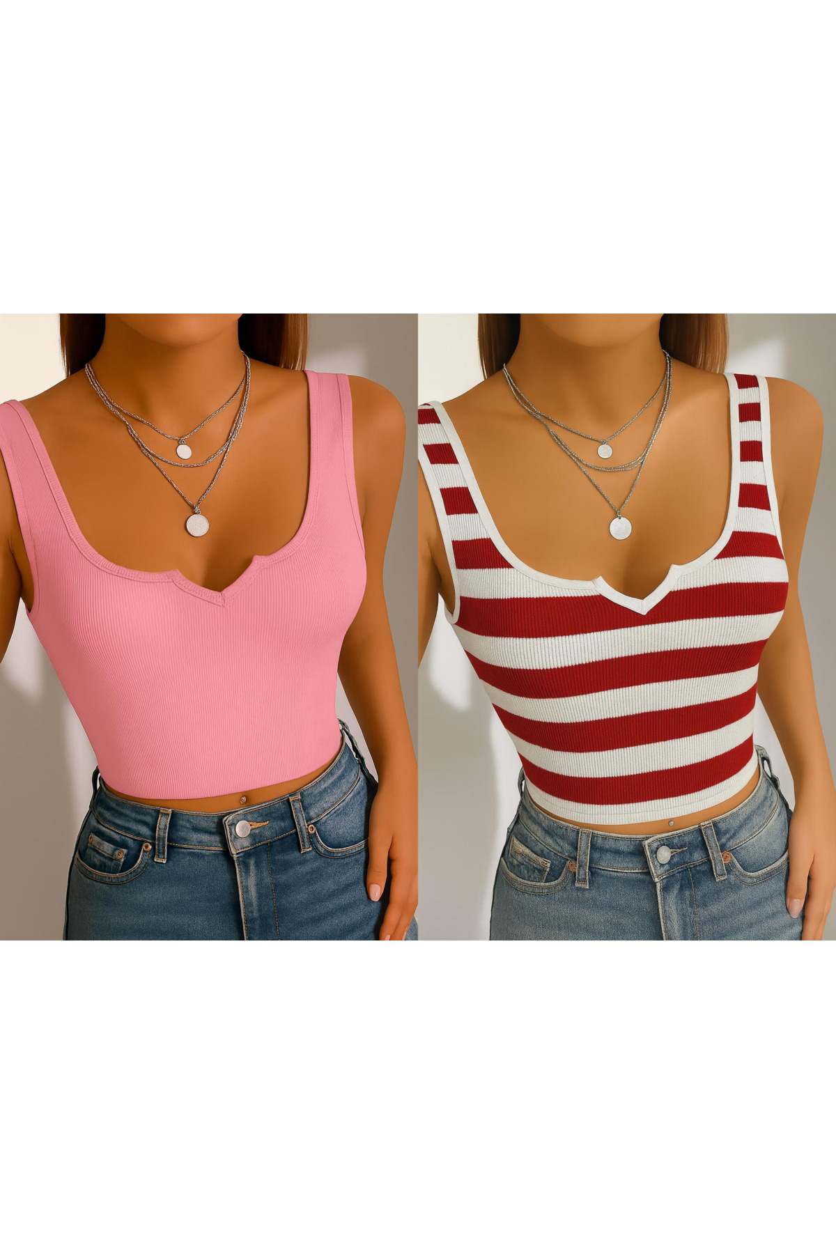 Kadın Balıkçı Yaka Kolsuz Crop 2'li Paket Örme Bluzz Kadın Balıkçı Yaka Kolsuz Crop 2'li Paket Örme Bluzz ÖZ PAMUK KOLSUZ-08 L