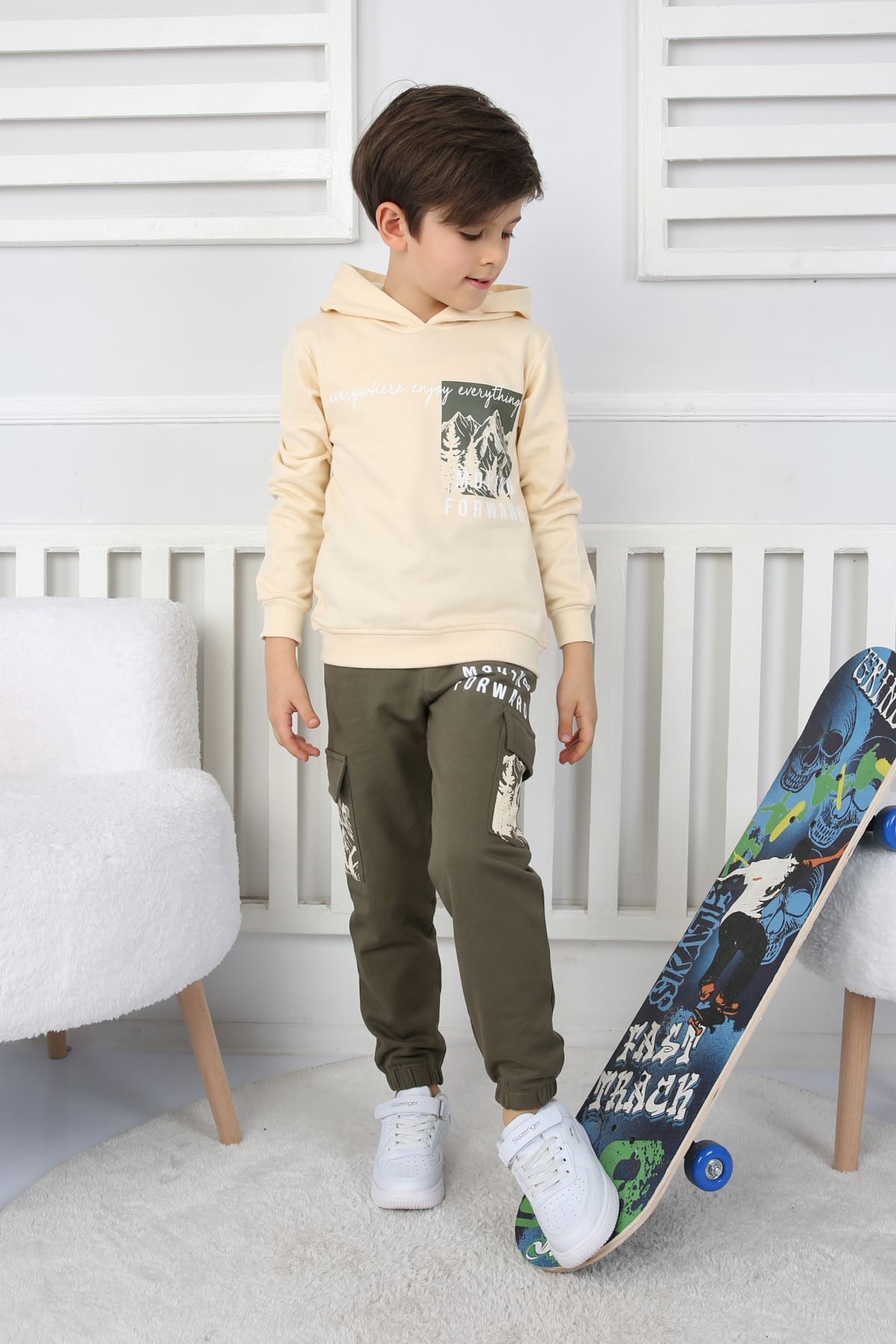 Basic Kapüşonlu 2 İplik Şardonlu Kanguru Cepli Çocuk Eşofman Takımı 3-10 Yaş Haki Basic Kapüşonlu 2 İplik Şardonlu Kanguru Cepli Çocuk Eşofman Takımı 3-10 Yaş Haki ZBETK-581 9-10 Yaş