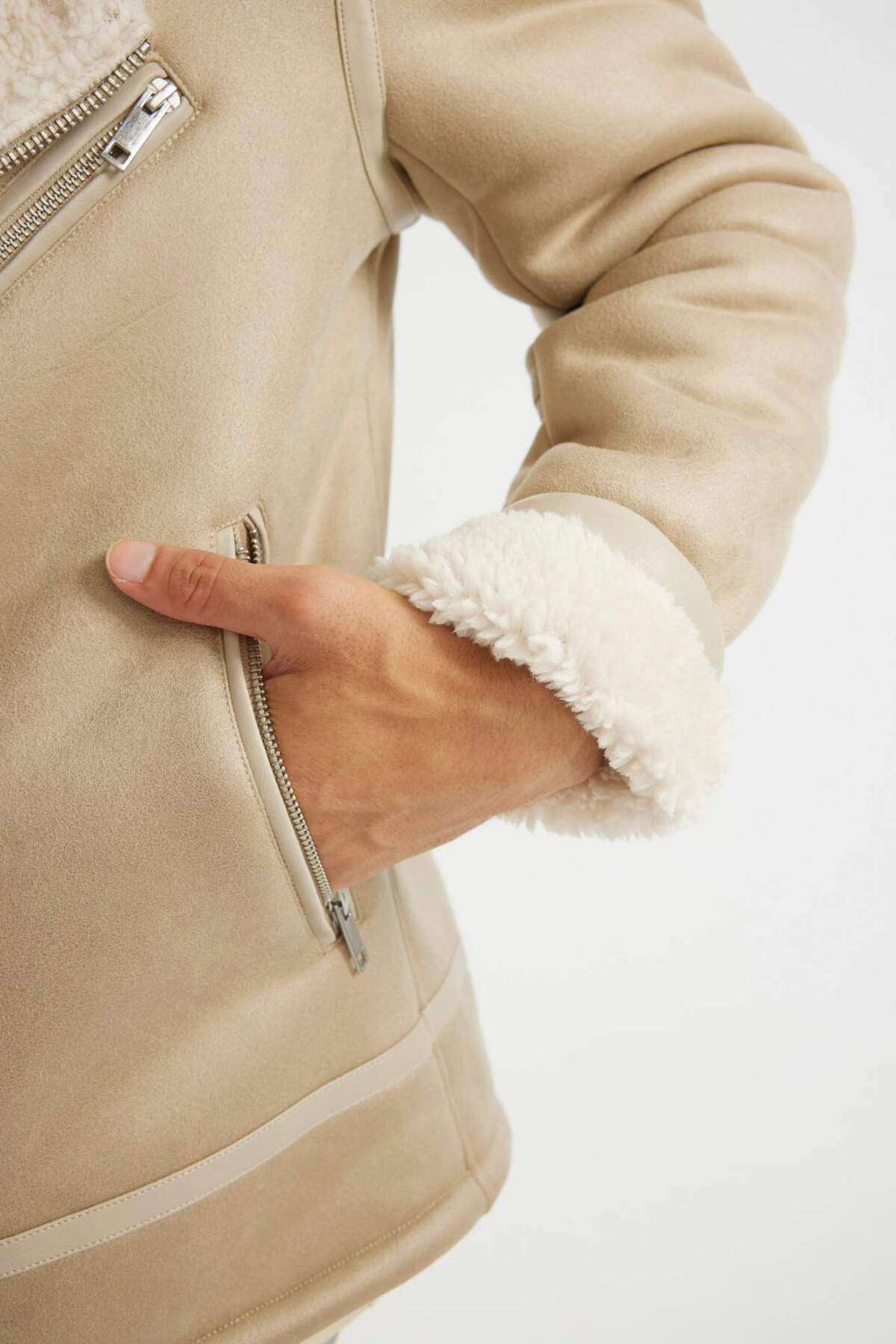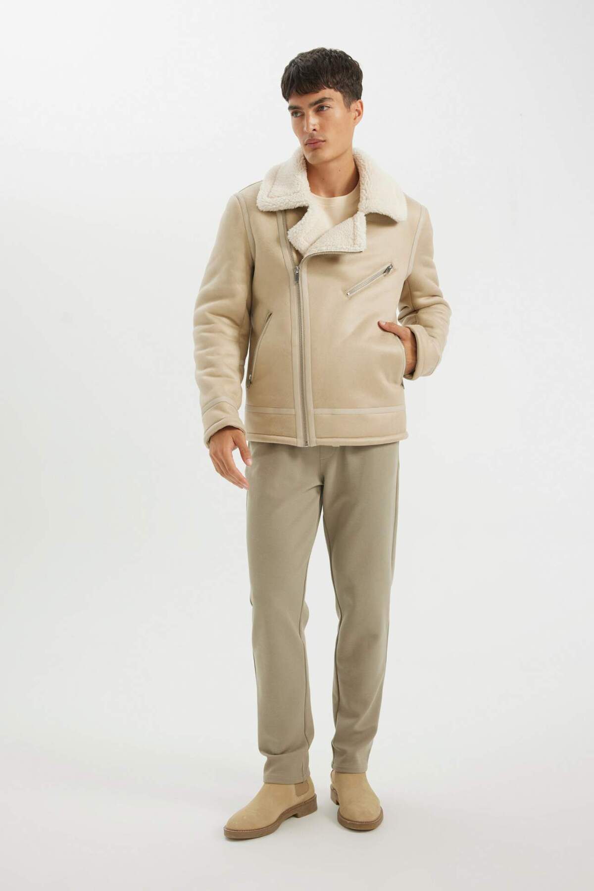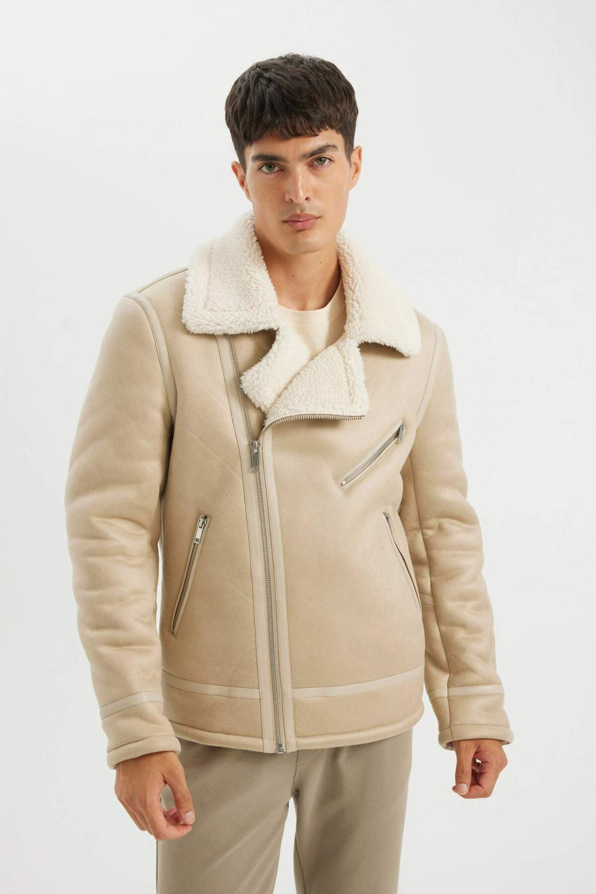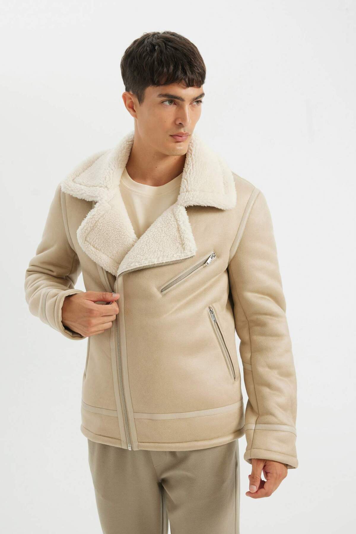 Slim Fit Dar Kesim Suni Kürk Astarlı Fermuarlı Cepli Süet Deri Kışlık Ceket Mont C5636AX24WN Slim Fit Dar Kesim Suni Kürk Astarlı Fermuarlı Cepli Süet Deri Kışlık Ceket Mont C5636AX24WN 3XL