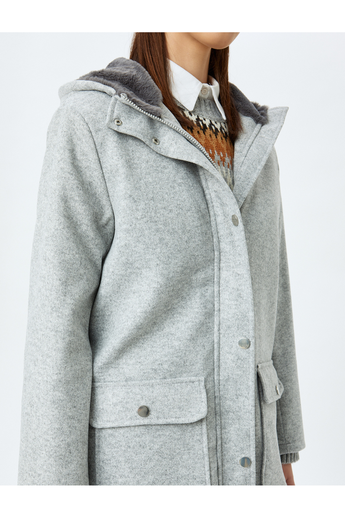 Suni Kürk Yaka Kapüşonlu Fermuarlı Cepli Kaban Suni Kürk Yaka Kapüşonlu Fermuarlı Cepli Kaban 5WAL00015IW 40