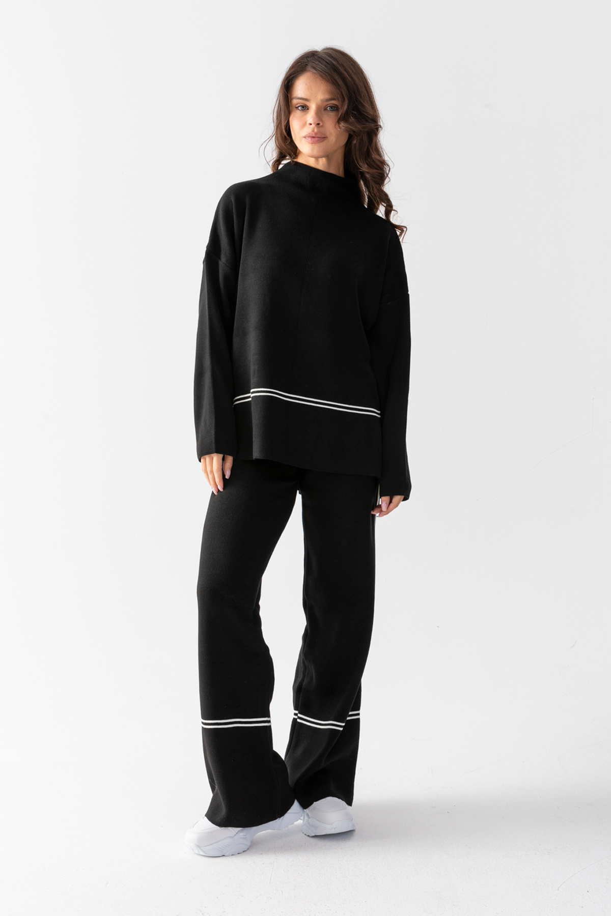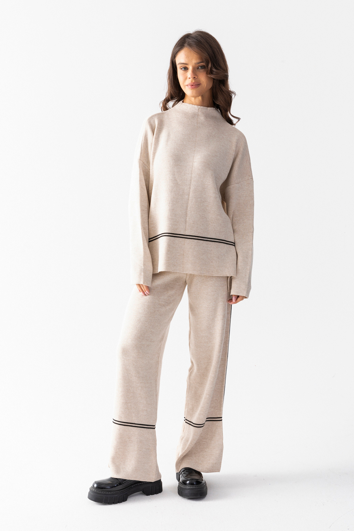 Çizgi Detaylı Geniş Paçalı Kadın Triko Takım - Standart Beden Çizgi Detaylı Geniş Paçalı Kadın Triko Takım - Standart Beden TRİKOTAKIM Standart
