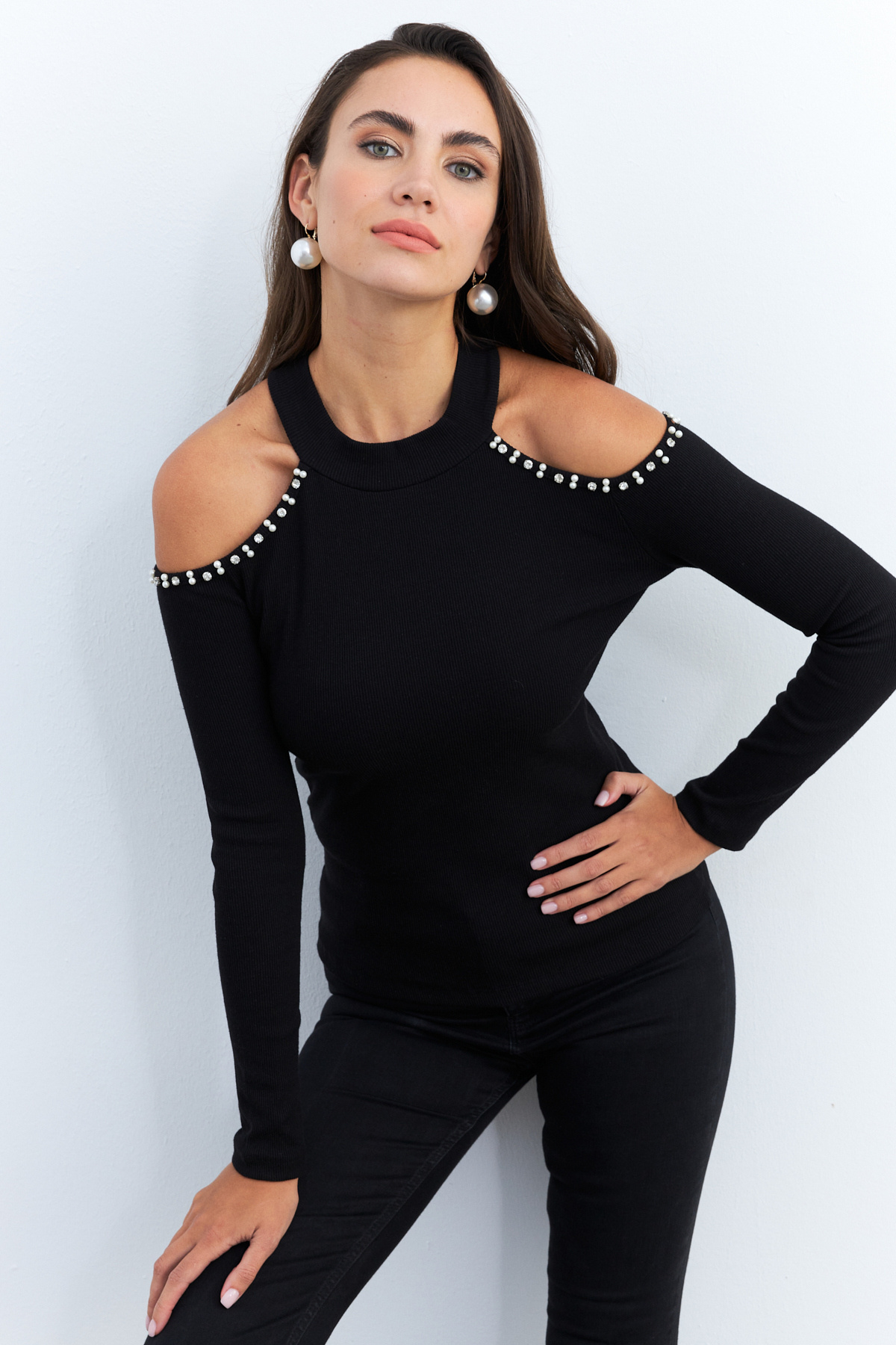 Kadın Bordo Omuzları Açık Kaşkorse Bluz EY2590 Kadın Bordo Omuzları Açık Kaşkorse Bluz EY2590 L