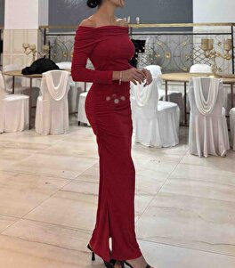 Kadın Kırmızı Drapeli Maxi Yılbaşı Elbise SHR7 Kadın Kırmızı Drapeli Maxi Yılbaşı Elbise SHR7 L
