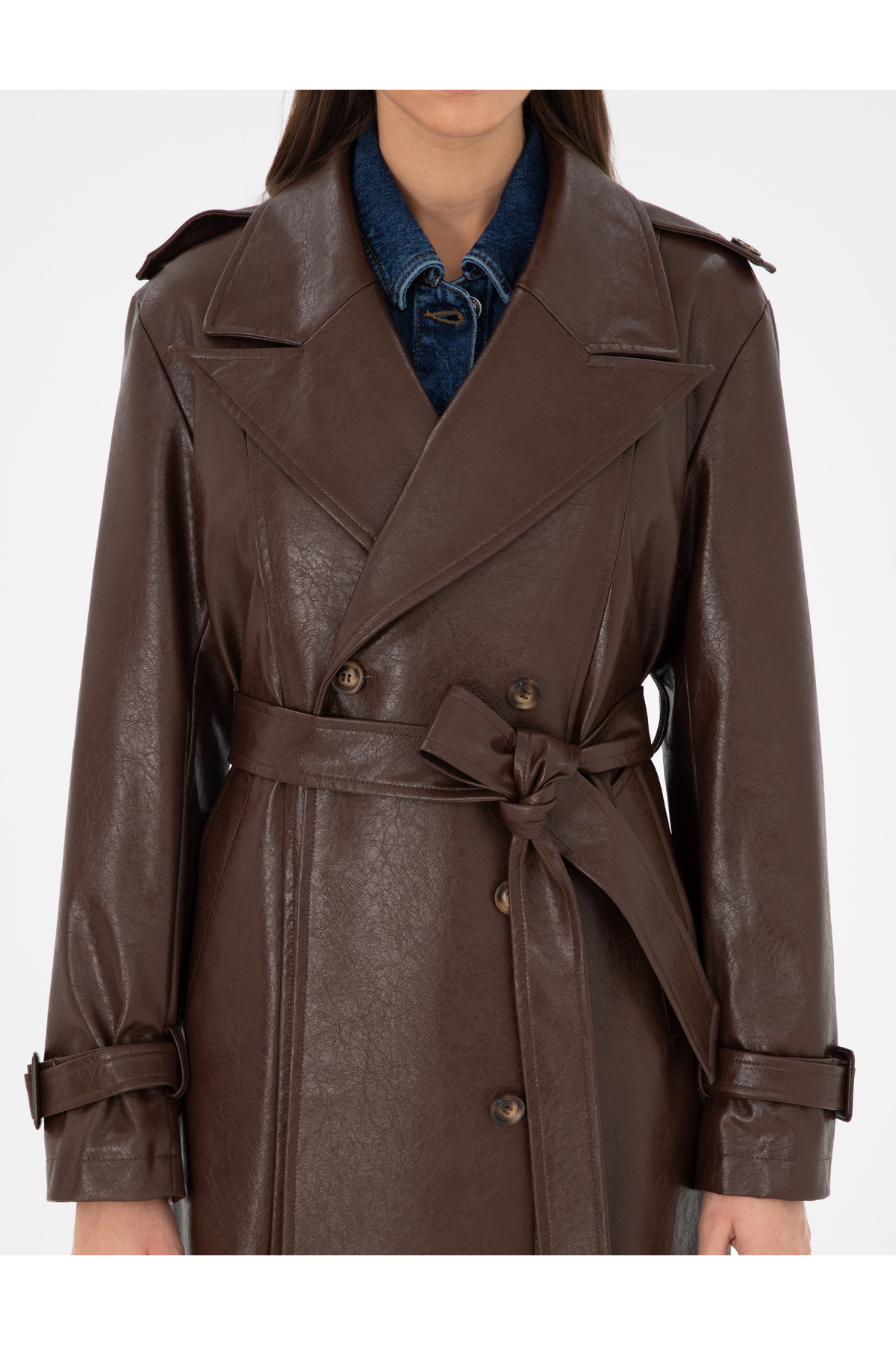 Kahverengi Suni Deri Trençkot 50295956-VR029 Kahverengi Suni Deri Trençkot 50295956-VR029 1106114 42
