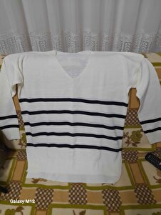 V Yaka Çizgili Triko Bluz 5k164 V Yaka Çizgili Triko Bluz 5k164 Standart