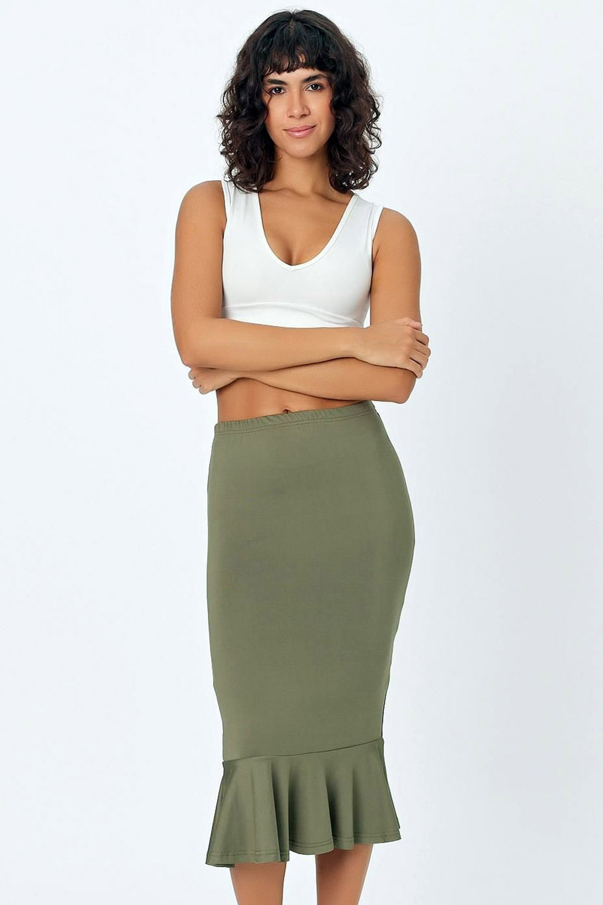 Lastikli Yüksek Belli Etek Ucu Volan Fırfırlı Likralı Şık ve Cool Midi Boy Kalem Etek Lastikli Yüksek Belli Etek Ucu Volan Fırfırlı Likralı Şık ve Cool Midi Boy Kalem Etek ADRP-2033 2XL