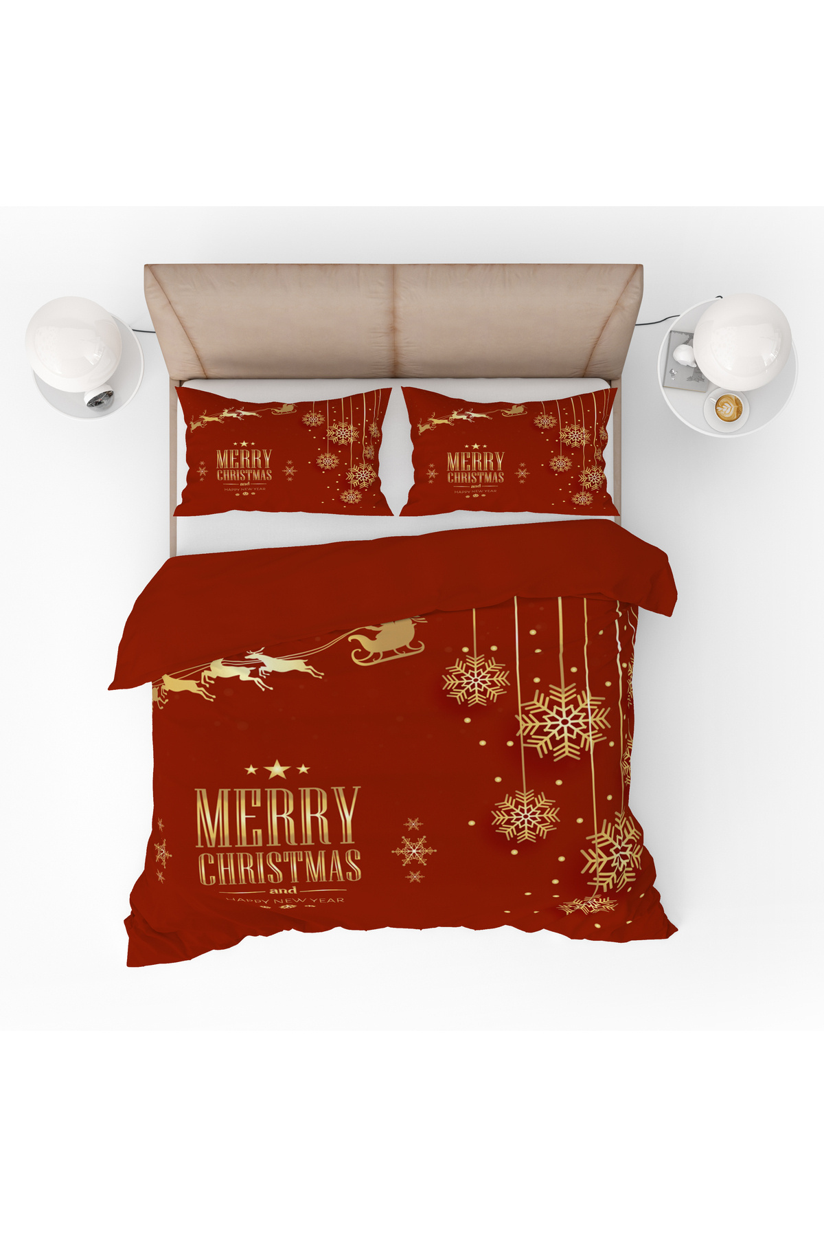 Yılbaşı Noel Desenli Çift Kişilik Çarşaflı Nevresim Takımı Yılbaşı Noel Desenli Çift Kişilik Çarşaflı Nevresim Takımı PSLYDNs001 تک سایز