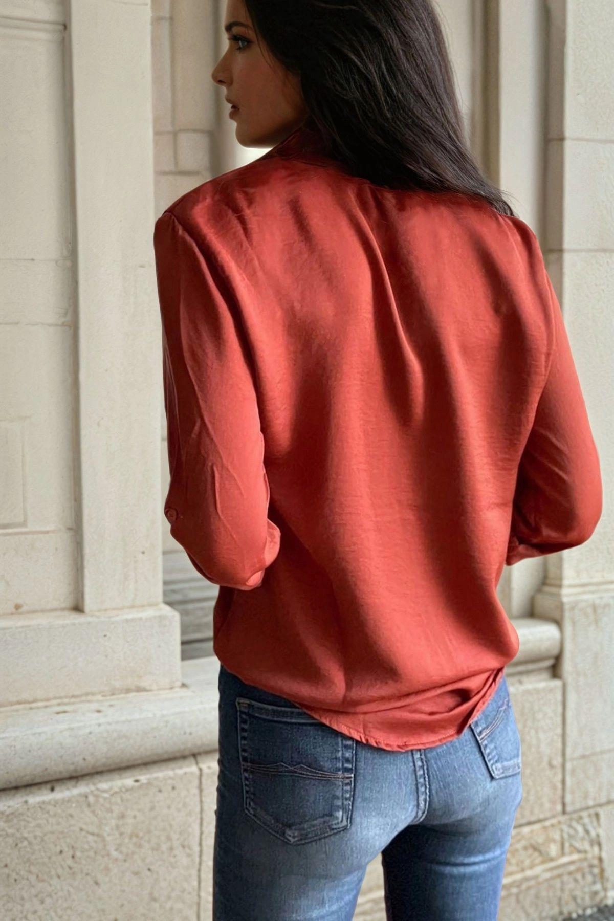 Bordo, Gizli Düğme Detaylı, Regular Kesimli, Saten Gömlek Bordo, Gizli Düğme Detaylı, Regular Kesimli, Saten Gömlek AI-3211 42