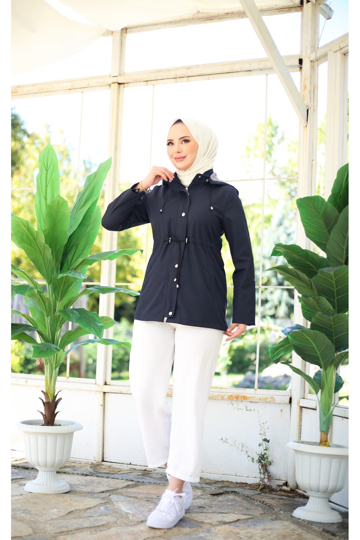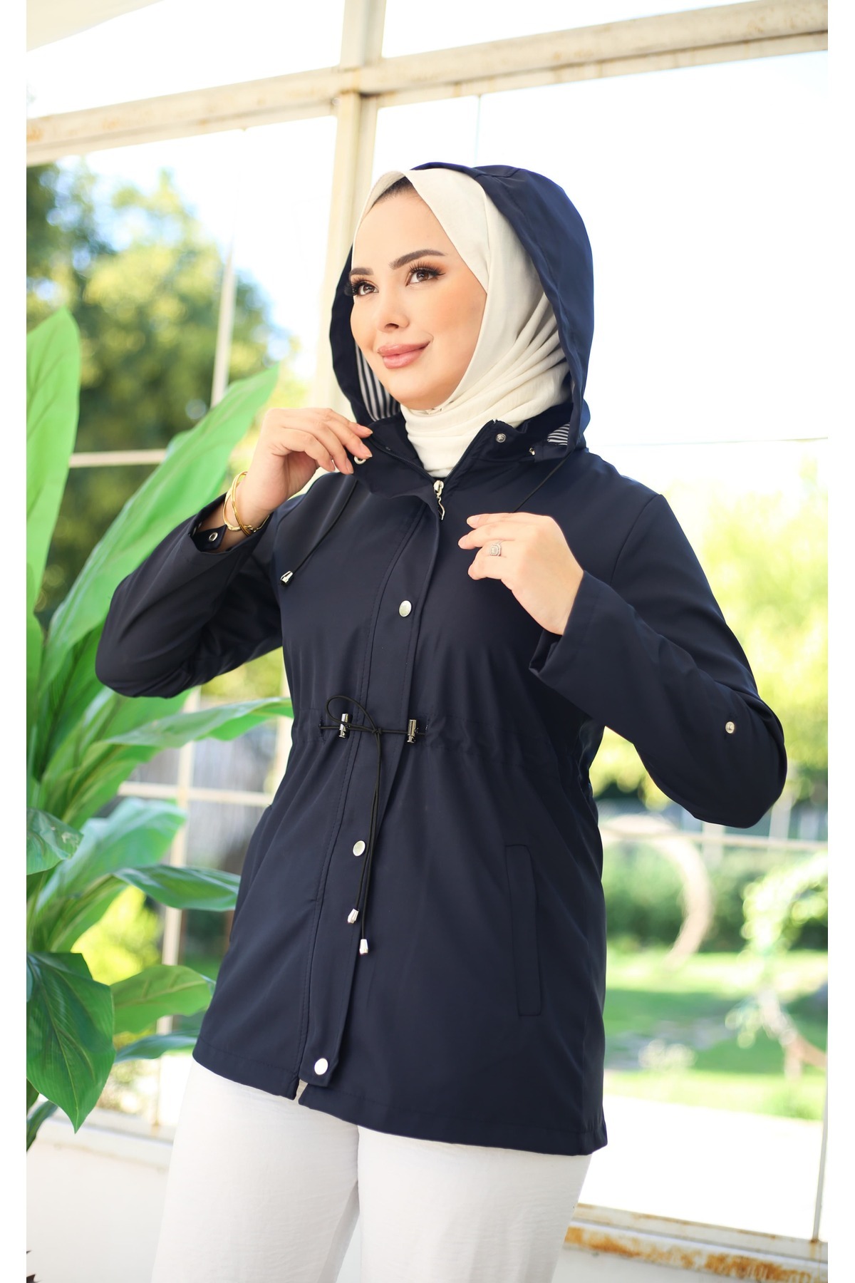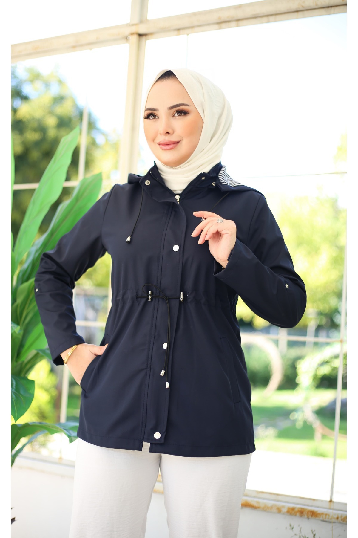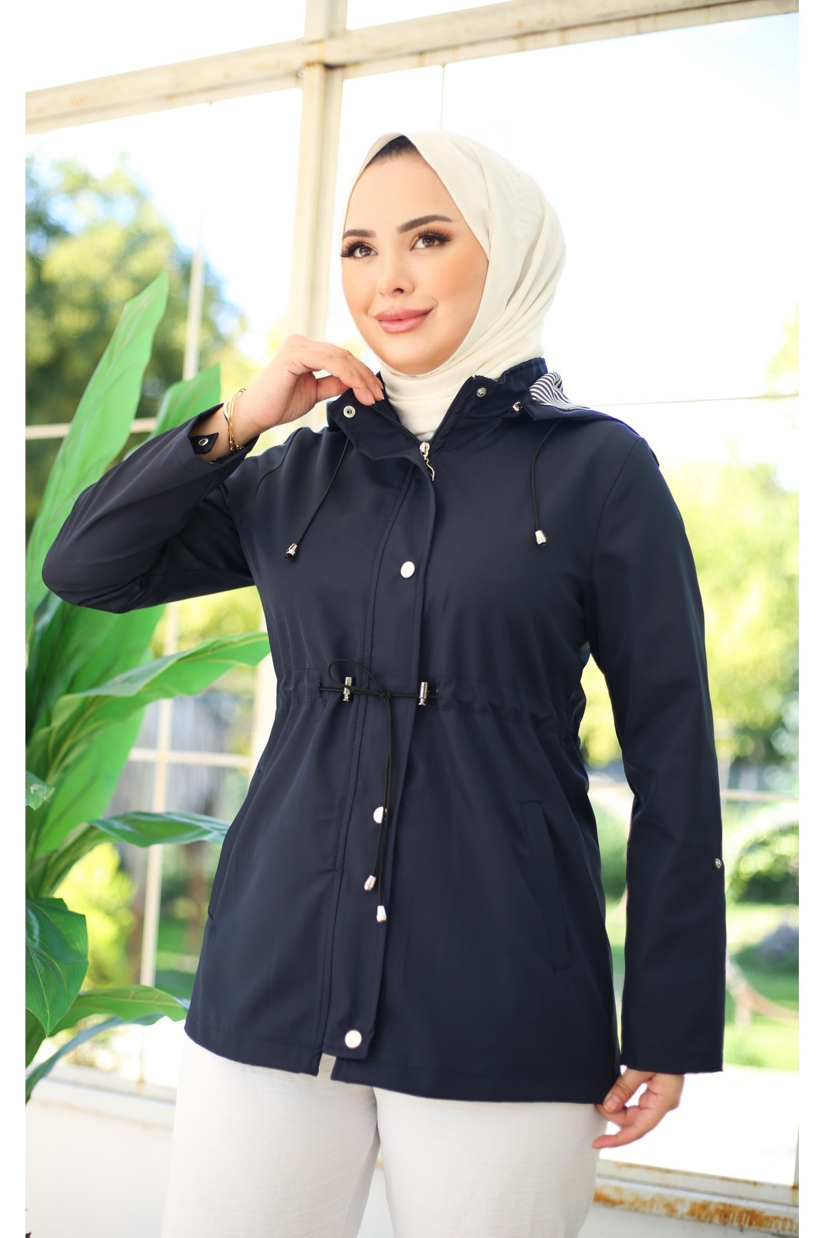 Lacivert Kapüşonlu Kısa Trençkot Lacivert Kapüşonlu Kısa Trençkot 254352 48