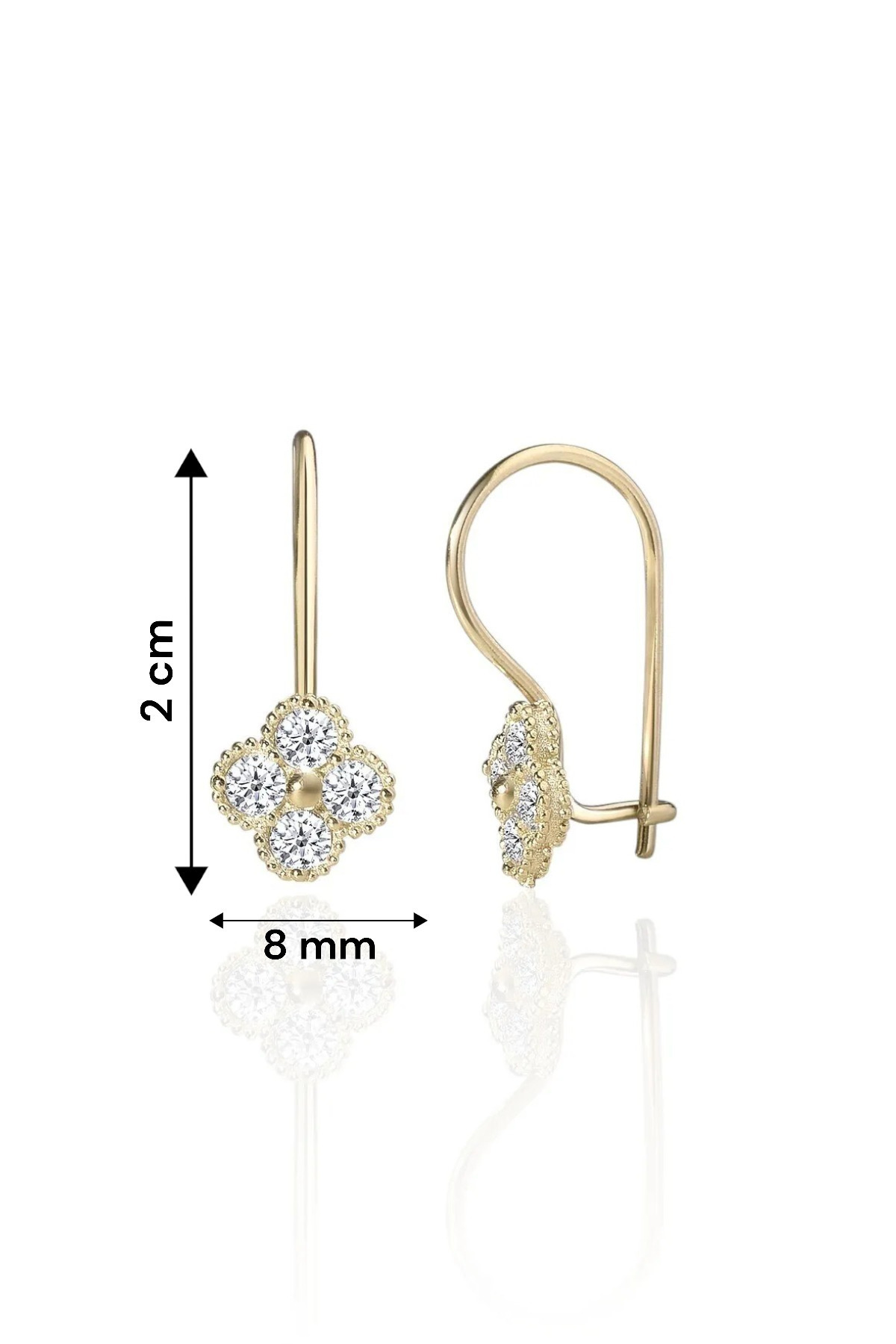 Gümüş 925 Ayar Yonca Zirkon Taşlı Gold Küpe Gümüş 925 Ayar Yonca Zirkon Taşlı Gold Küpe JLX-KPR371 تک سایز