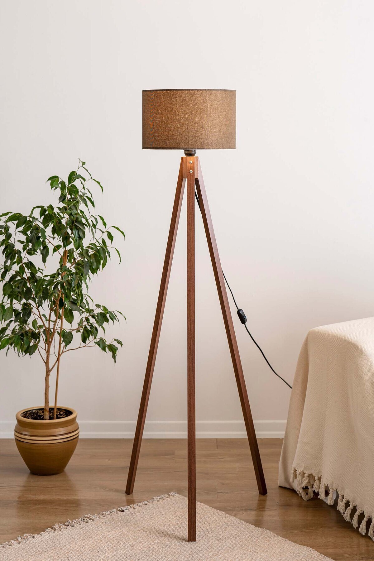Kahverengi Dokulu Silindir Başlık Ahşap Üç Ayaklı Lambader Kahverengi Dokulu Silindir Başlık Ahşap Üç Ayaklı Lambader KL0096 تک سایز