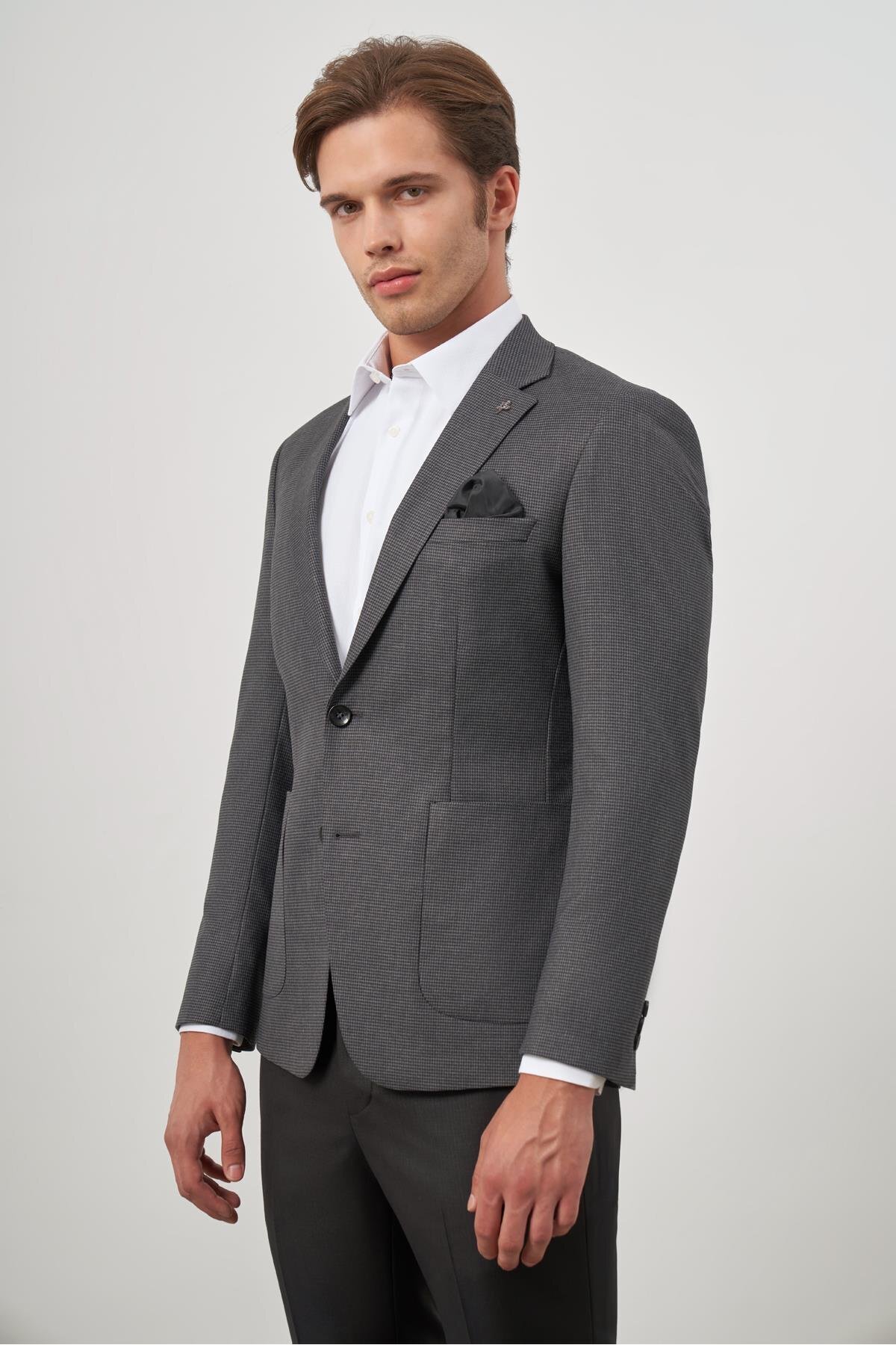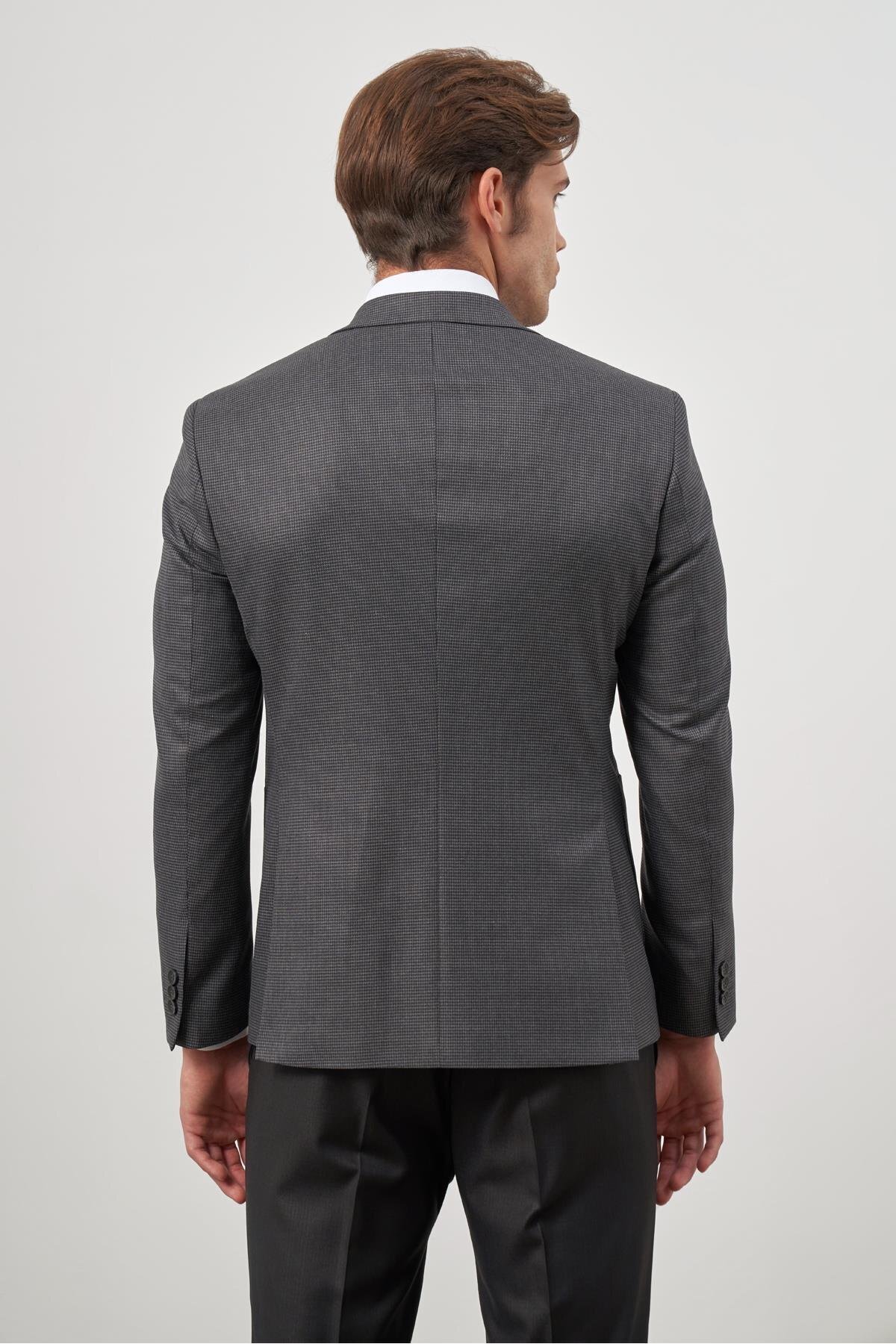 Koyu Antrasit Kazayağı Desen Mono Yaka 6 Drop Slim Fit Classic Ceket 1002245106 Koyu Antrasit Kazayağı Desen Mono Yaka 6 Drop Slim Fit Classic Ceket 1002245106 56