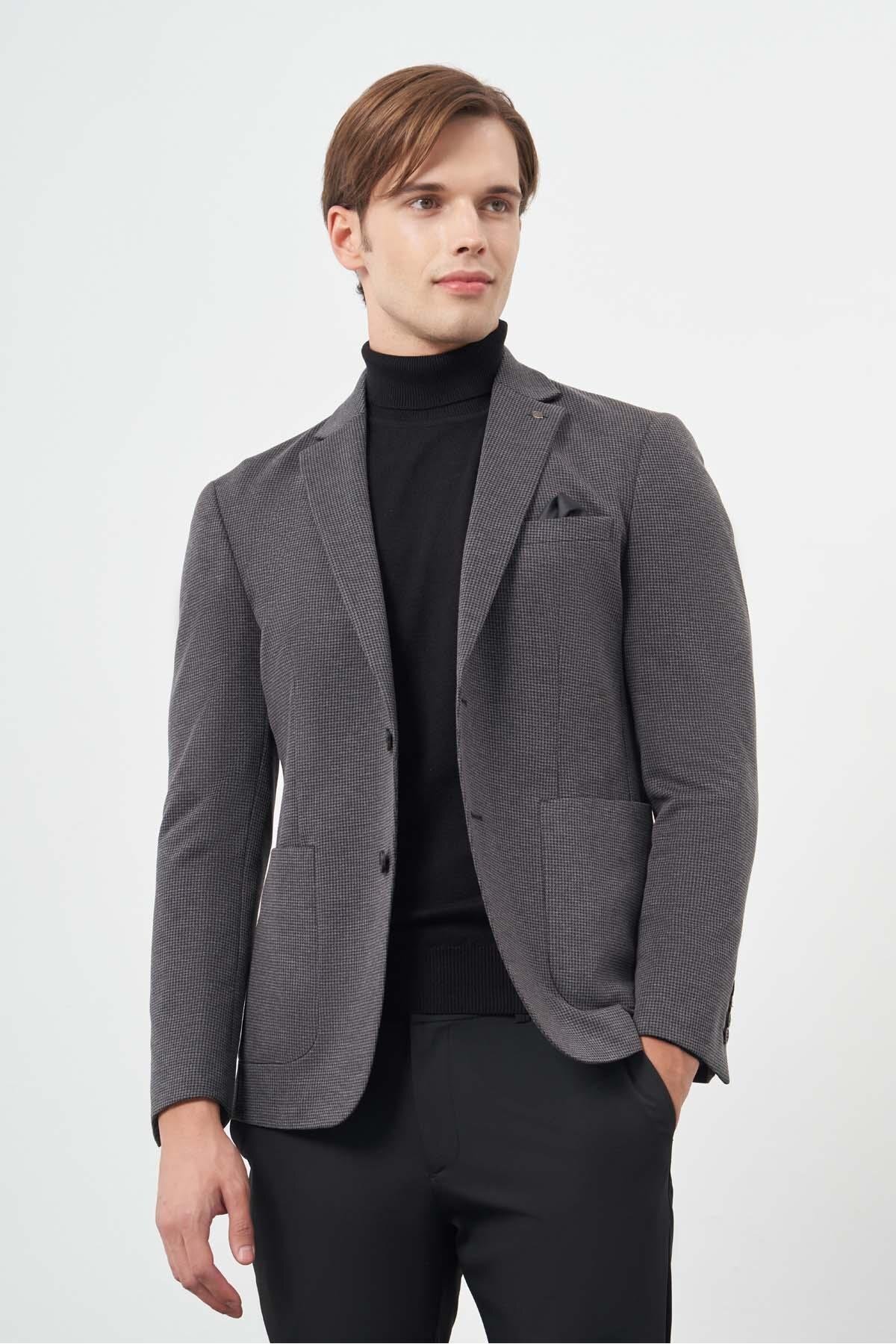 Siyah Kazayağı Desen Örme Mono Yaka 6 Drop Slim Fit Ceket 1002245150 Siyah Kazayağı Desen Örme Mono Yaka 6 Drop Slim Fit Ceket 1002245150 58