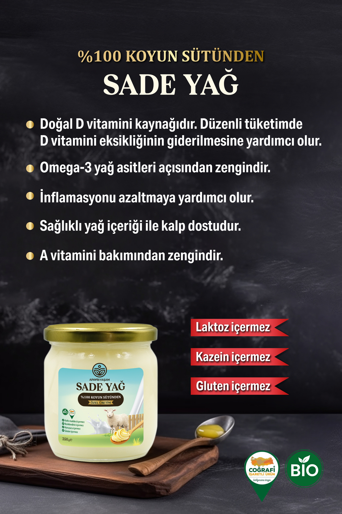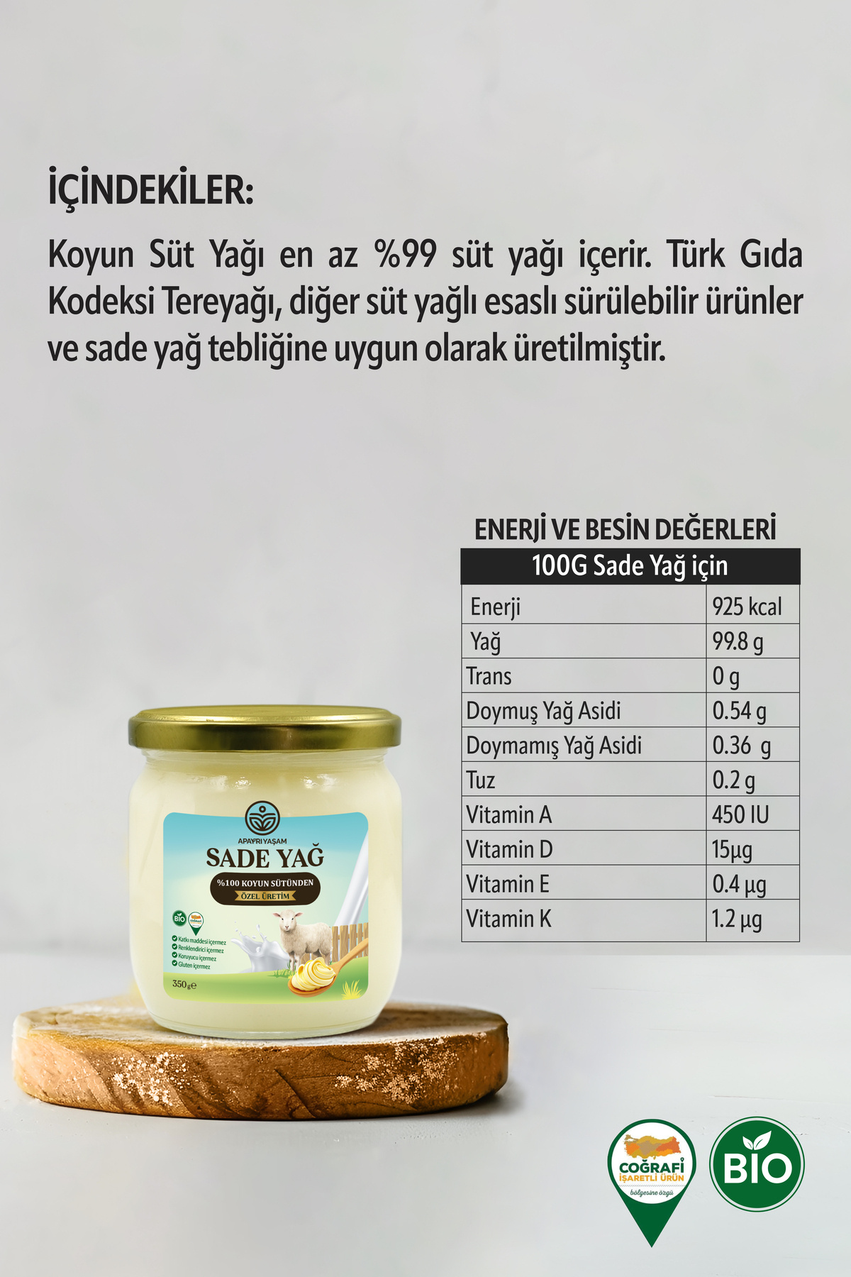 %100 Koyun Sütünden Özel Üretim Sade Yağ Yemeklik 350gr (Laktosuz, Kazeinsiz, Ghee) %100 Koyun Sütünden Özel Üretim Sade Yağ Yemeklik 350gr (Laktosuz, Kazeinsiz, Ghee) تک سایز