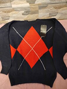 15895 Baklava Desenli Oversize Triko Kazak - Siyah 15895 Baklava Desenli Oversize Triko Kazak - Siyah 15895BGD19 تک سایز