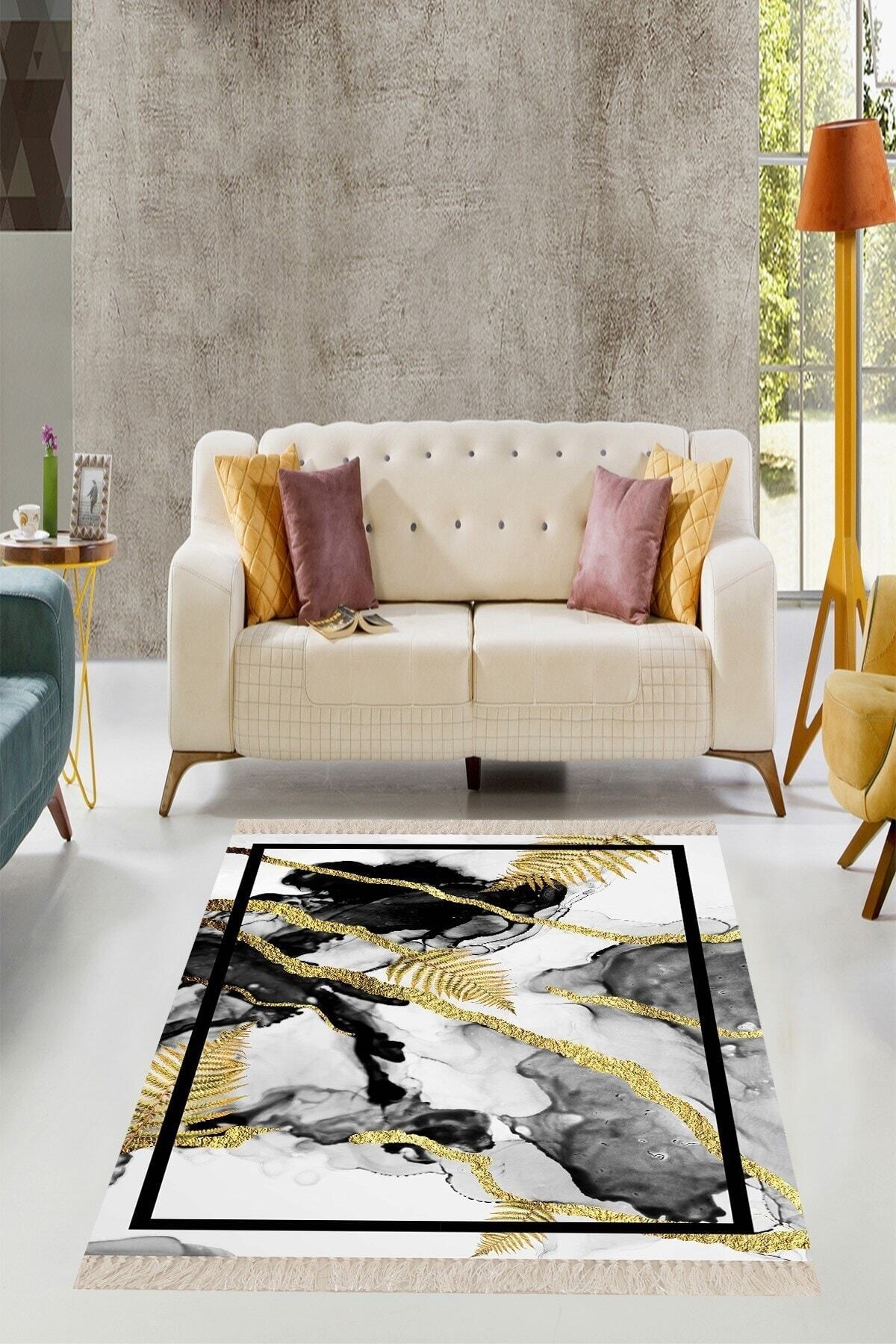 Siyah Desenli Kaymaz Tabanlı Halı Siyah Desenli Kaymaz Tabanlı Halı MEG1608S 160 x 230
