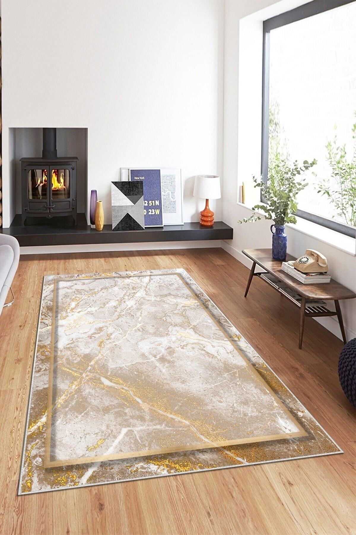 Beyaz Zemin Gold Çerçeveli Yıkanabilir Kaymaz Taban Leke Tutmaz Modern Salon Halısı Ve Yolluk Beyaz Zemin Gold Çerçeveli Yıkanabilir Kaymaz Taban Leke Tutmaz Modern Salon Halısı Ve Yolluk TYC0282154944MMRTMOD12009 160 x 230