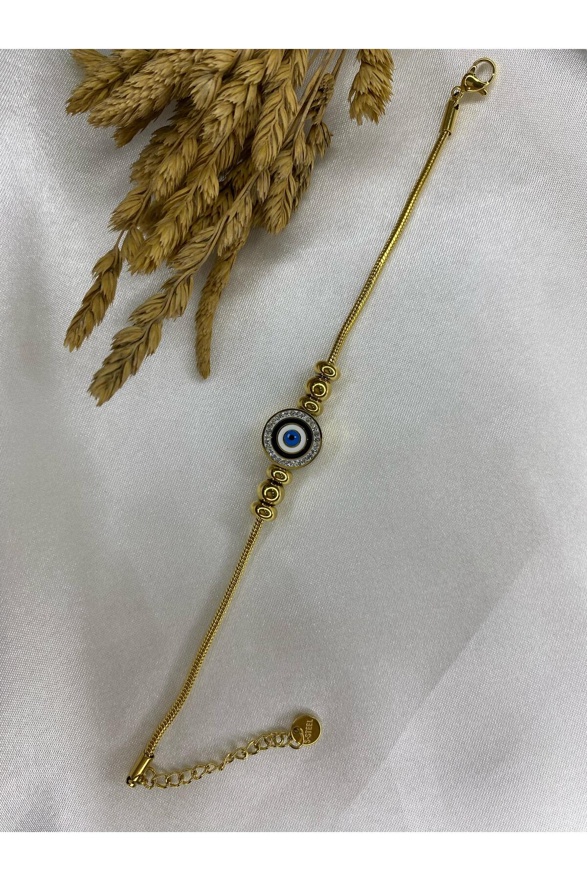 Yonca Figürlü Nazar Boncuklu Altın Sarısı Bileklik Yonca Figürlü Nazar Boncuklu Altın Sarısı Bileklik 15934455693 L