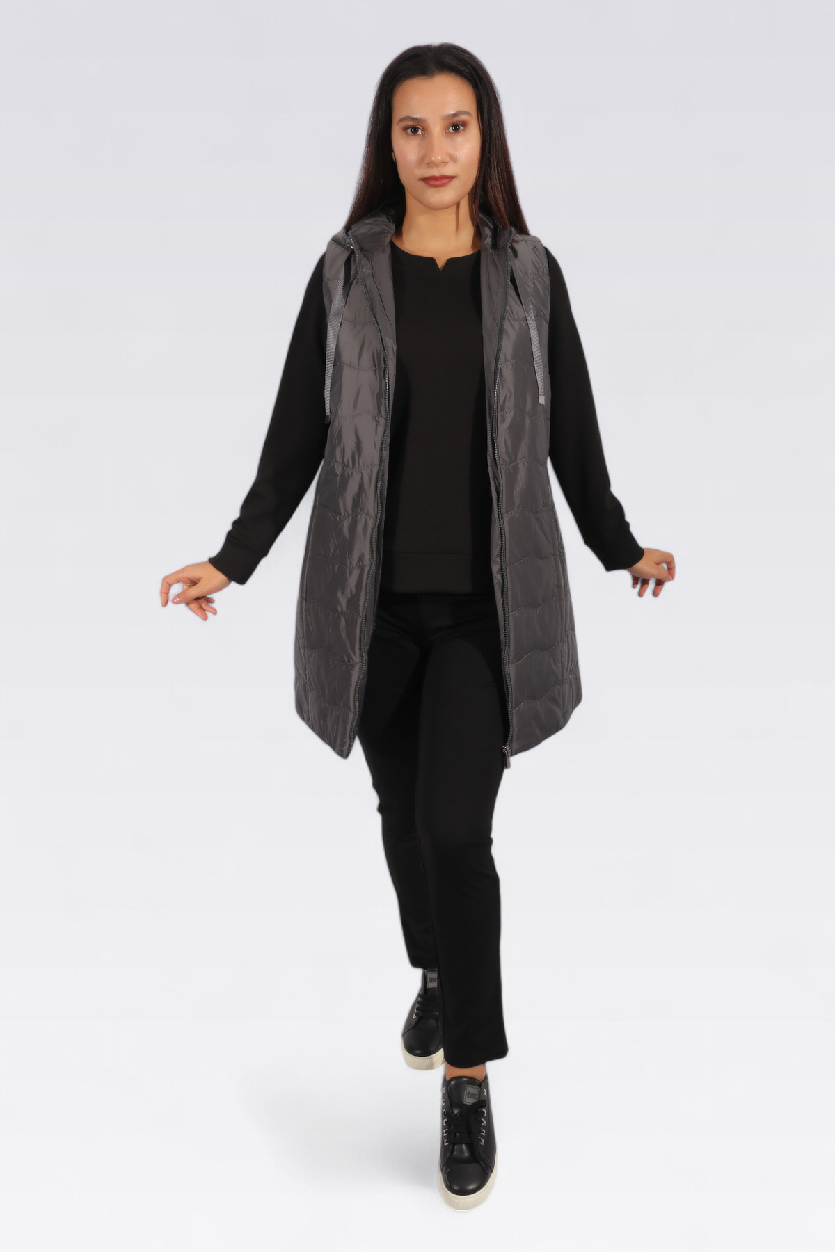70041 ANTRASİT KAPÜŞONLU UZUN KAPİTONE YELEK 70041 ANTRASİT KAPÜŞONLU UZUN KAPİTONE YELEK 42