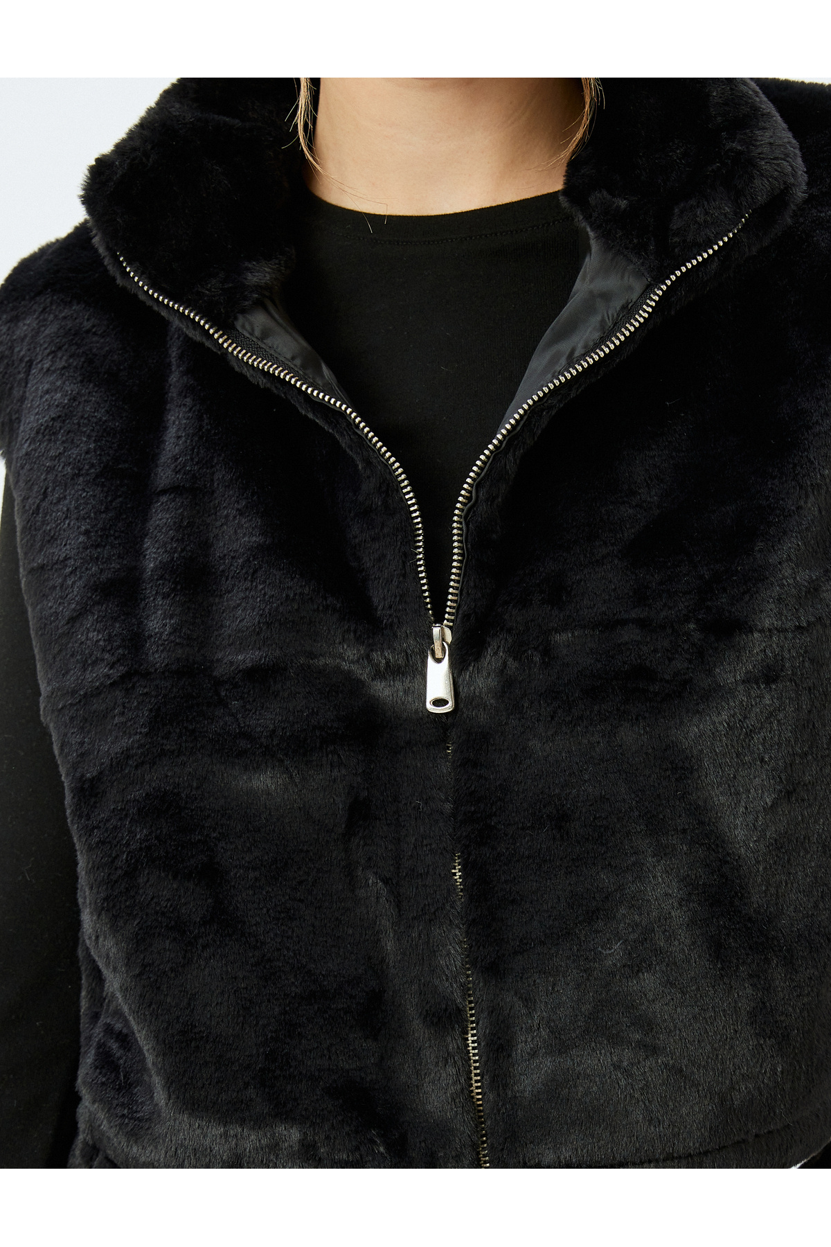 Suni Kürk Dik Yaka Fermuarlı Crop Astarlı Yelek Suni Kürk Dik Yaka Fermuarlı Crop Astarlı Yelek 5WAL20091IW XL