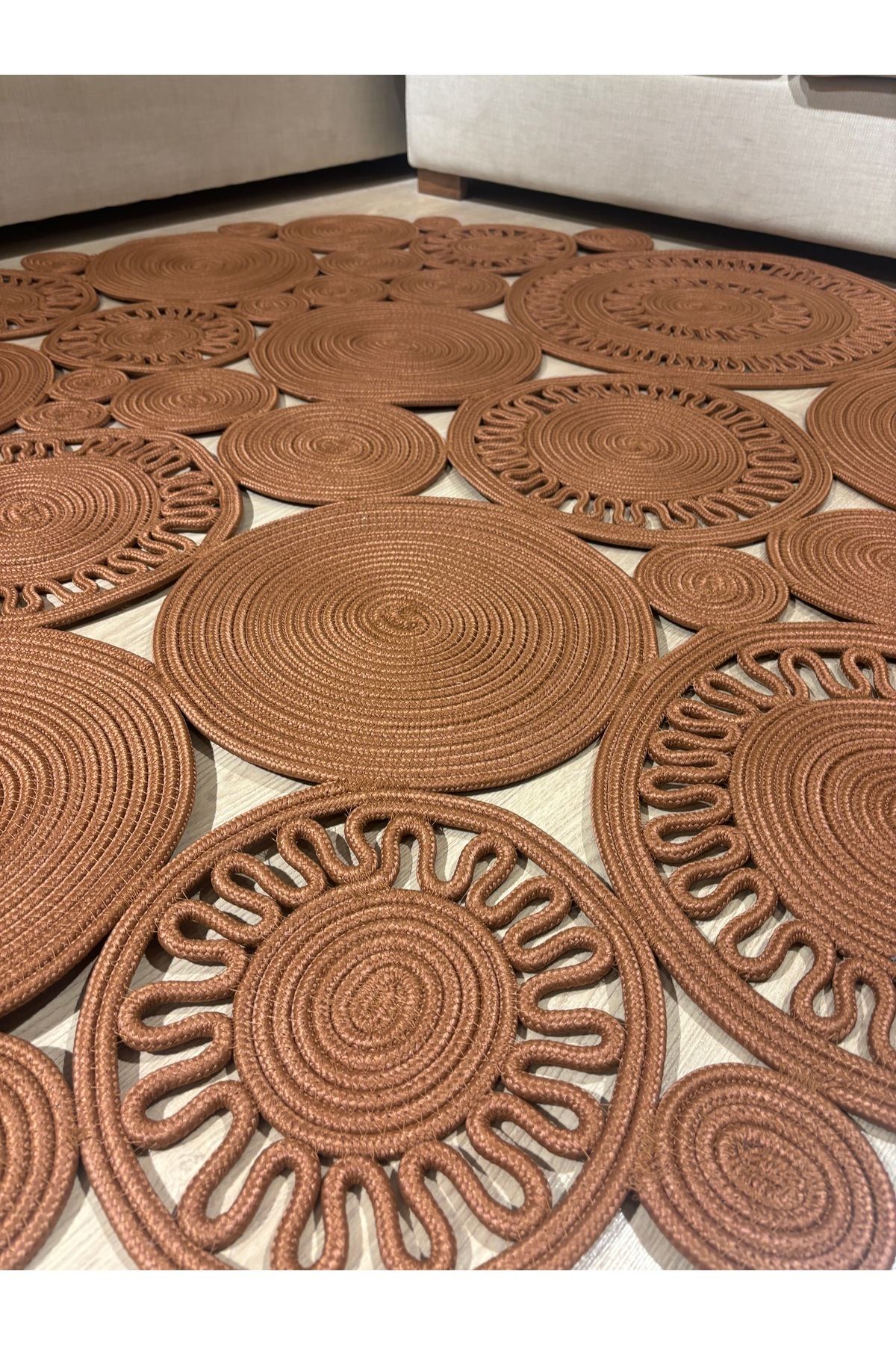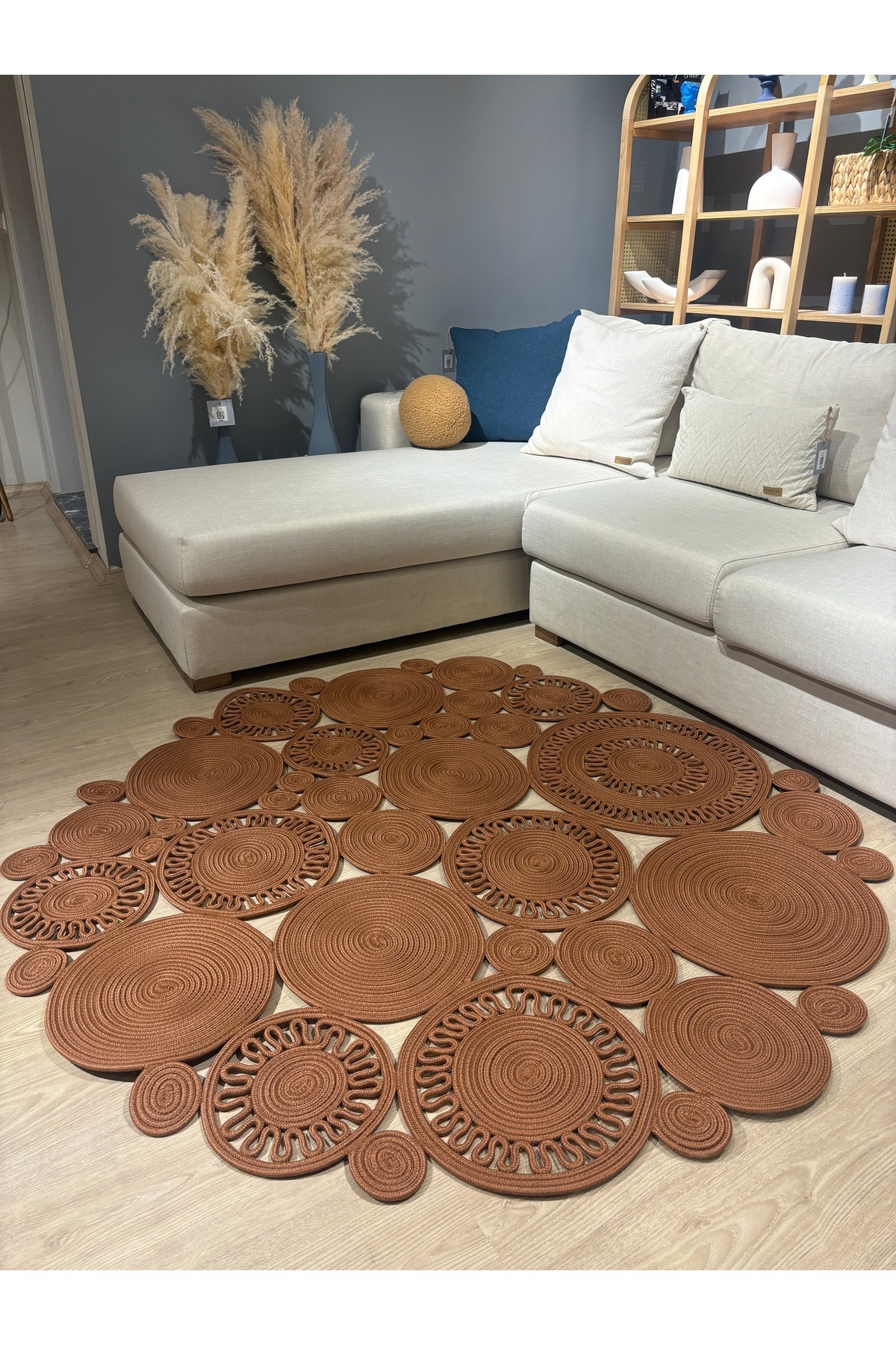 Tarçın Rengi Harmony Jüt Doğal Hasır Kilim Bej Geometrik Bohem Yuvarlak El Örmesi Halı Tarçın Rengi Harmony Jüt Doğal Hasır Kilim Bej Geometrik Bohem Yuvarlak El Örmesi Halı HarmonyMvx 100 x 100