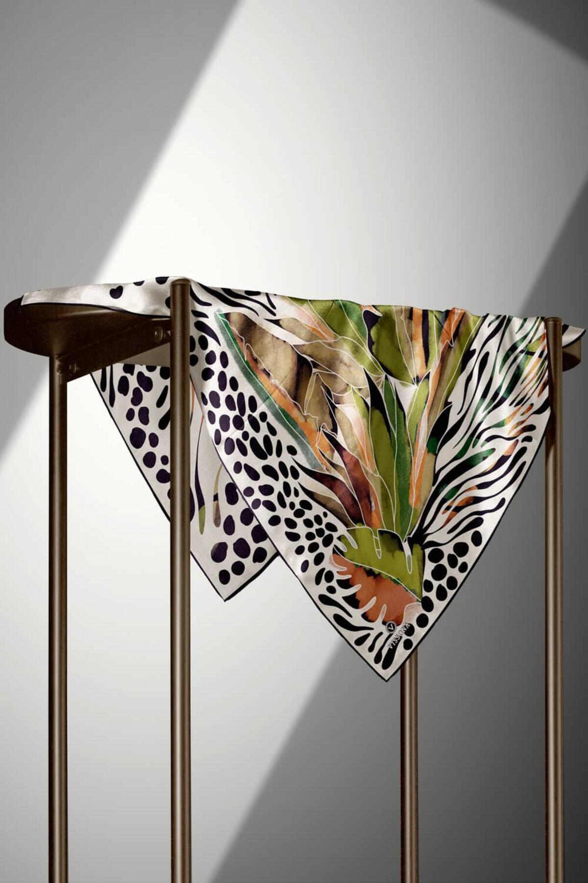%100 Twill İpek Amazon Desenli Haki Yeşili - Bakır Renkli 90x90 Eşarp Kenar Dikiş Şekli El Dikişli %100 Twill İpek Amazon Desenli Haki Yeşili - Bakır Renkli 90x90 Eşarp Kenar Dikiş Şekli El Dikişli 10681-9 90x90