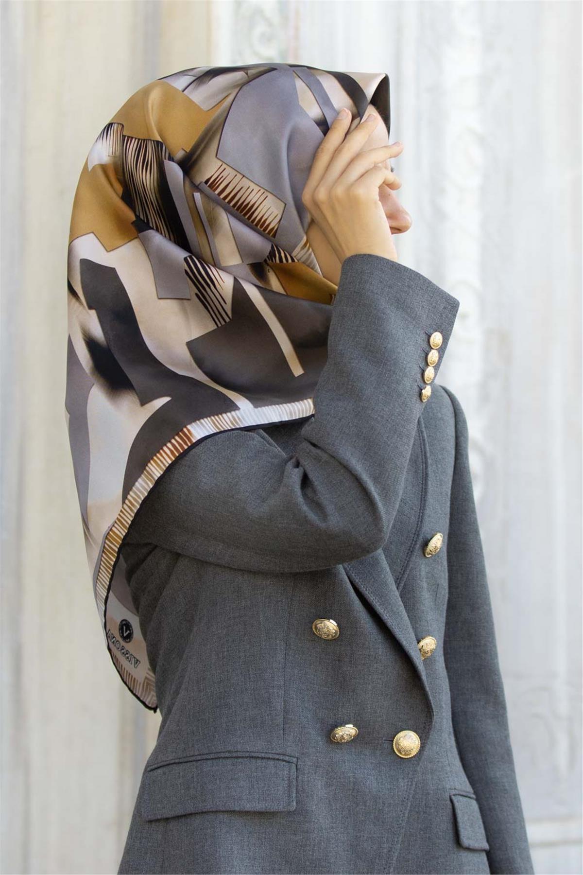 %100 Twill İpek Amazon Desenli Gri- Bej Renkli 90x90 Eşarp Kenar Dikiş Şekli El Dikişli %100 Twill İpek Amazon Desenli Gri- Bej Renkli 90x90 Eşarp Kenar Dikiş Şekli El Dikişli 10681-1 90x90