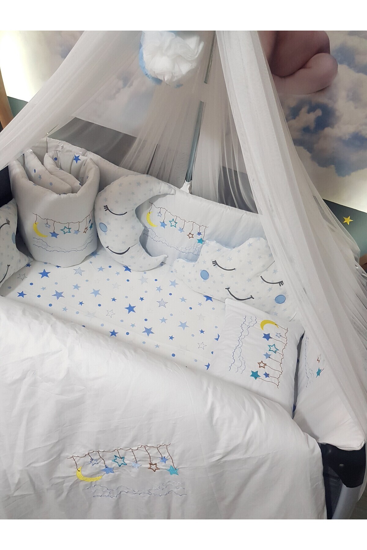 70x110 Nakışlı Isimli Bebek Uyku Seti 18 Parça - Lüks Cibinlik Ve Aparat - Ay Yıldız 70x110 Nakışlı Isimli Bebek Uyku Seti 18 Parça - Lüks Cibinlik Ve Aparat - Ay Yıldız USNAK-70110-LCİB-2. تک سایز