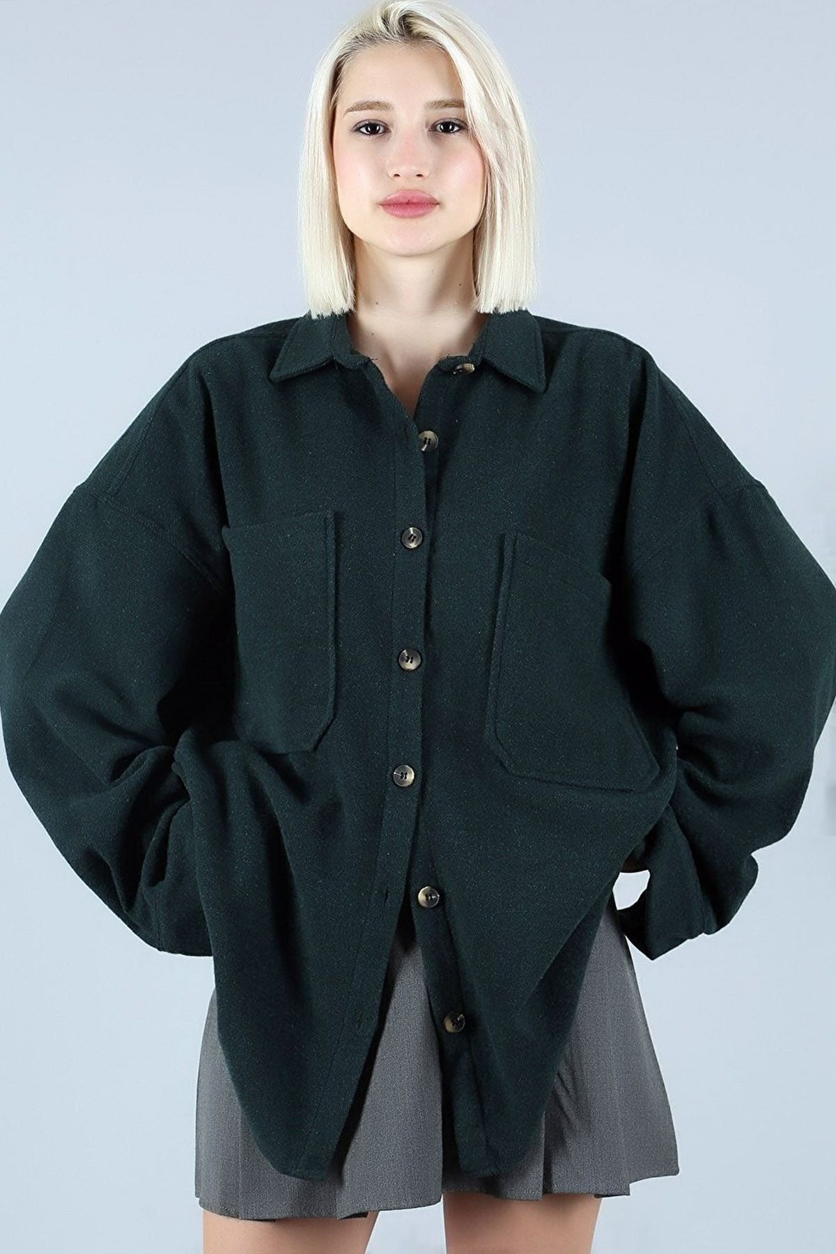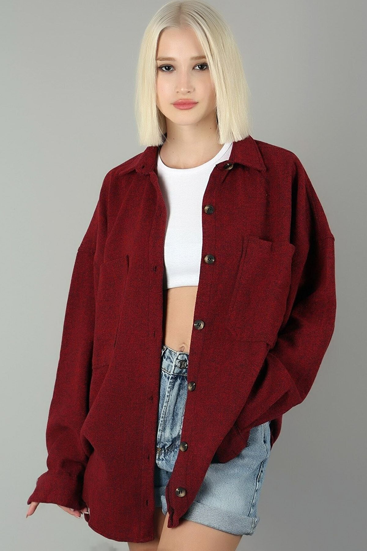 Kadın Uzun Kollu Cepli Düğmeli Oversize Kalın Ceket Gömlek Kadın Uzun Kollu Cepli Düğmeli Oversize Kalın Ceket Gömlek VIVI-1057 L