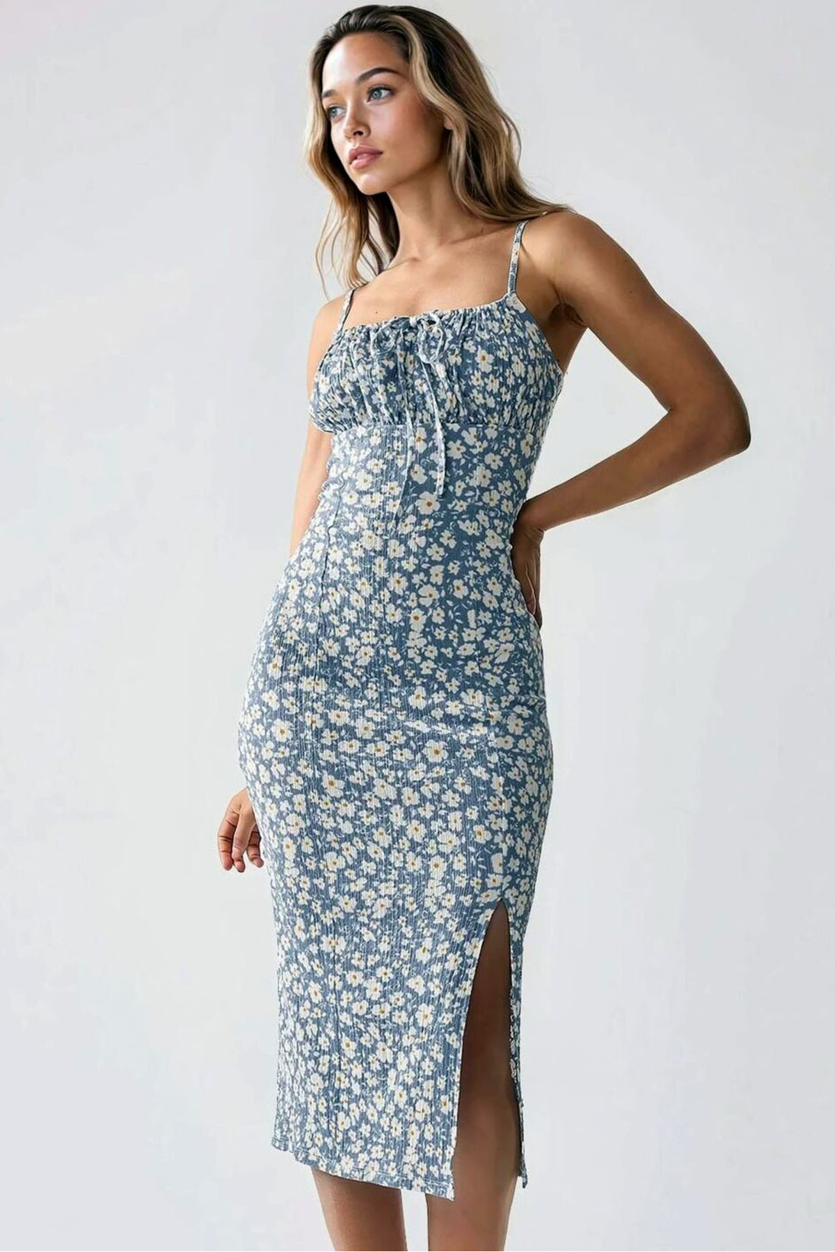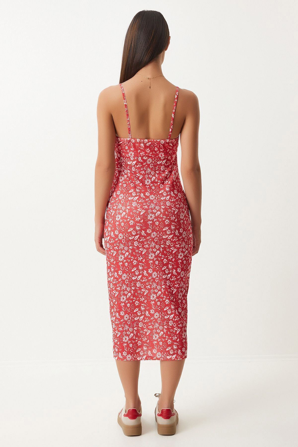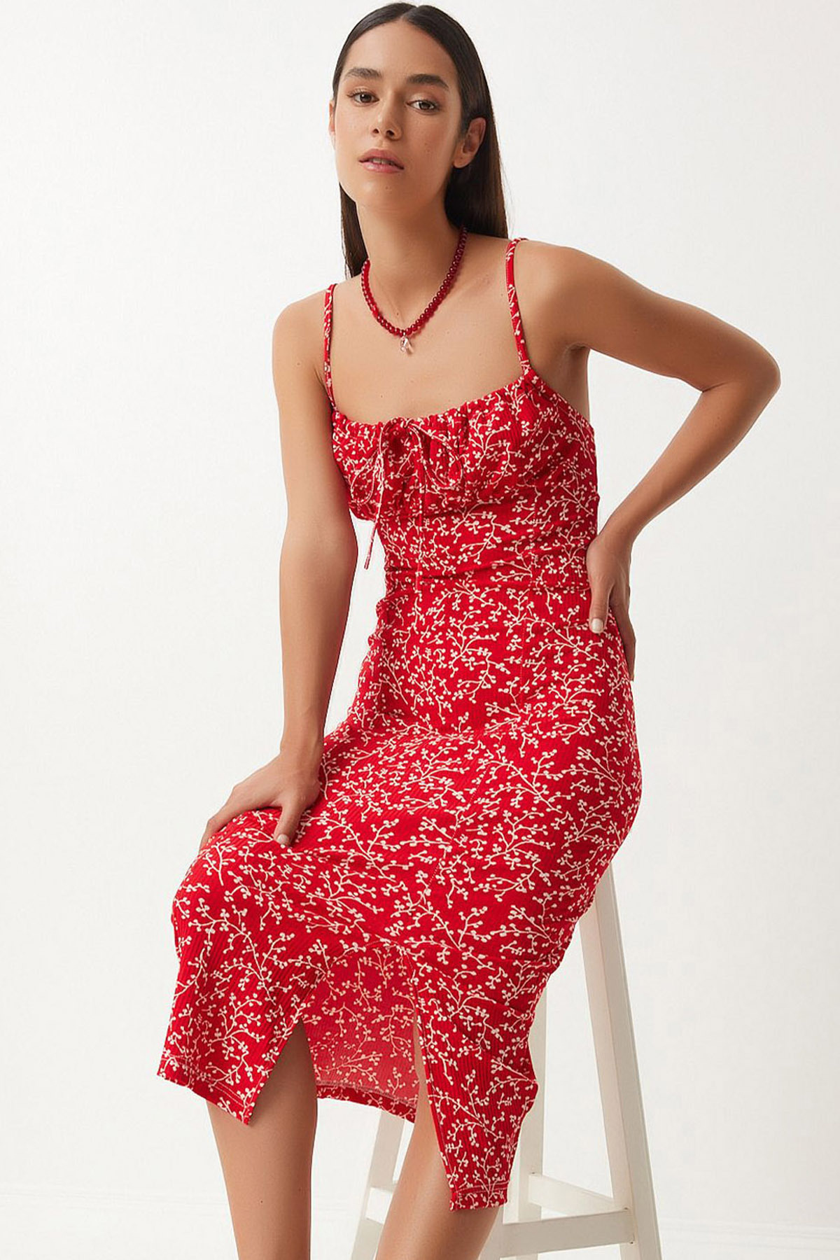 Kadın İnce Askılı Göğüs Büzgülü İpli Yırtmsçlı Midi Boy Desenli Elbise Kadın İnce Askılı Göğüs Büzgülü İpli Yırtmsçlı Midi Boy Desenli Elbise VIVI-1768 40