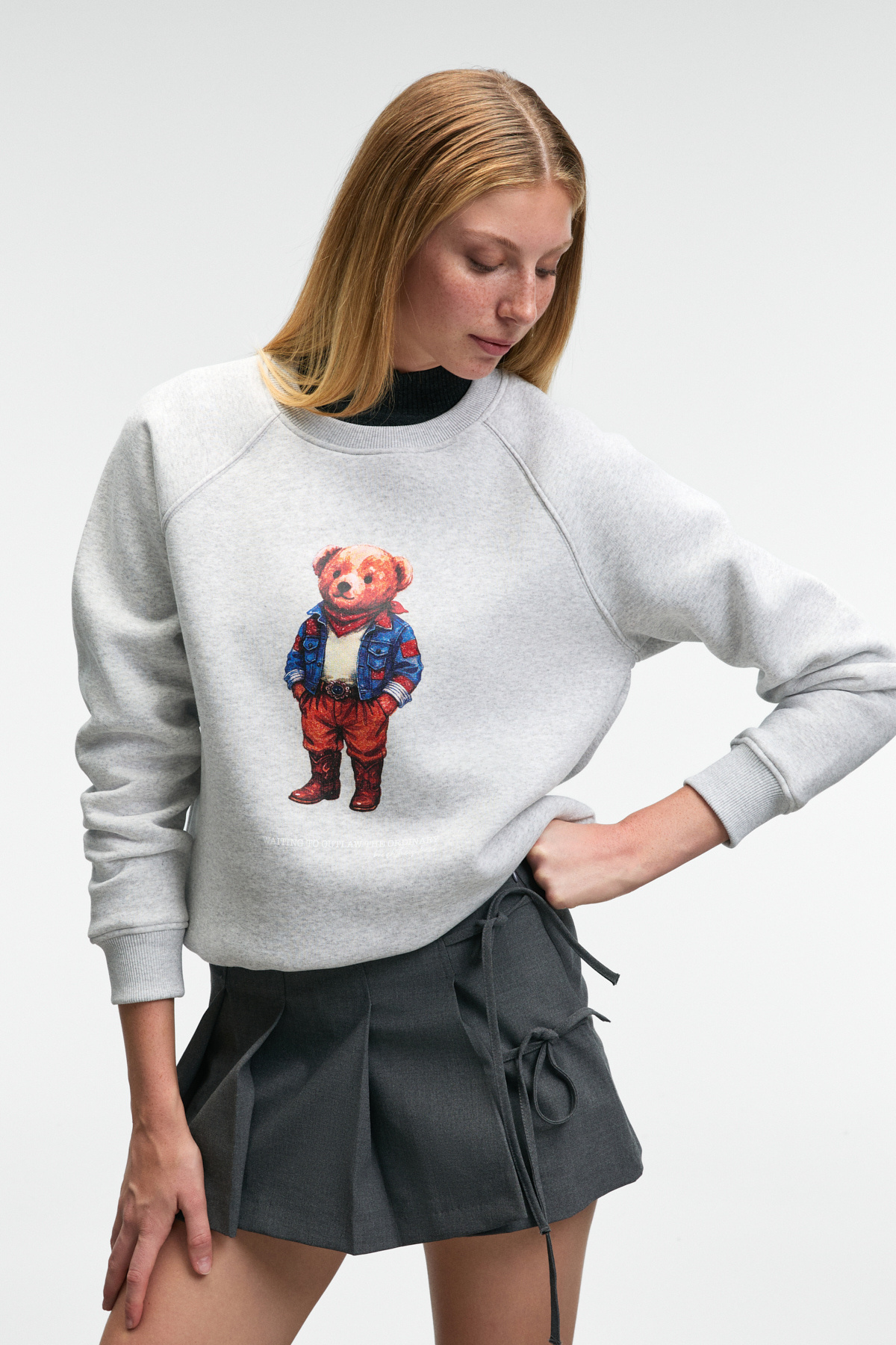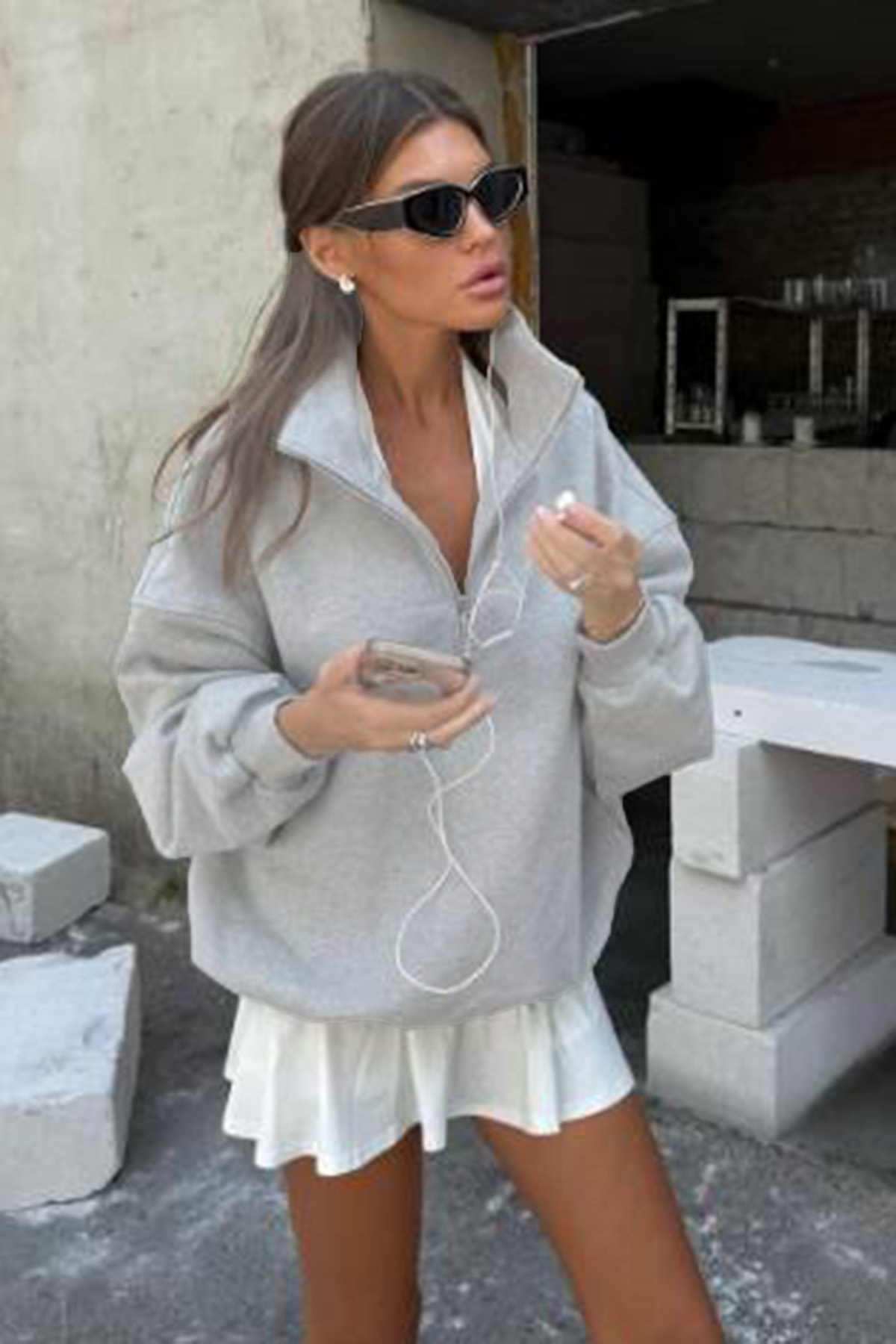 Bej Yarım Fermuarlı Baskılı Sweatshirt MG2212 Bej Yarım Fermuarlı Baskılı Sweatshirt MG2212 XL