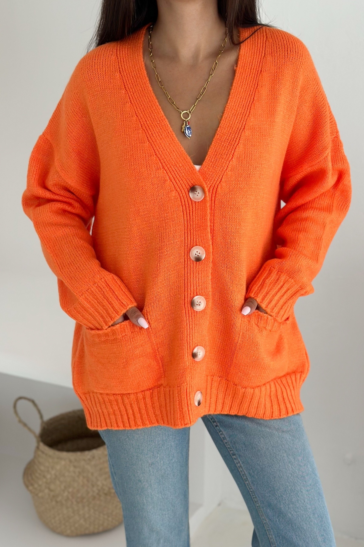 Kadın Turuncu Kanguru Cep Triko Hırka Kadın Turuncu Kanguru Cep Triko Hırka DVKA-0025 Standart