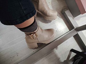 Yandan Fermuarlı Toka Detaylı Yüksek Rahat Topuklu Kadın Bej Bot & Bootie Yandan Fermuarlı Toka Detaylı Yüksek Rahat Topuklu Kadın Bej Bot & Bootie mahmut-04 40