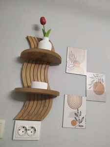 Dalga Desen Dekoratif Duvar Rafı ve 3 Parça Bohem Tablo Seti Dalga Desen Dekoratif Duvar Rafı ve 3 Parça Bohem Tablo Seti WD-DalgaDesen-222 18 x 45