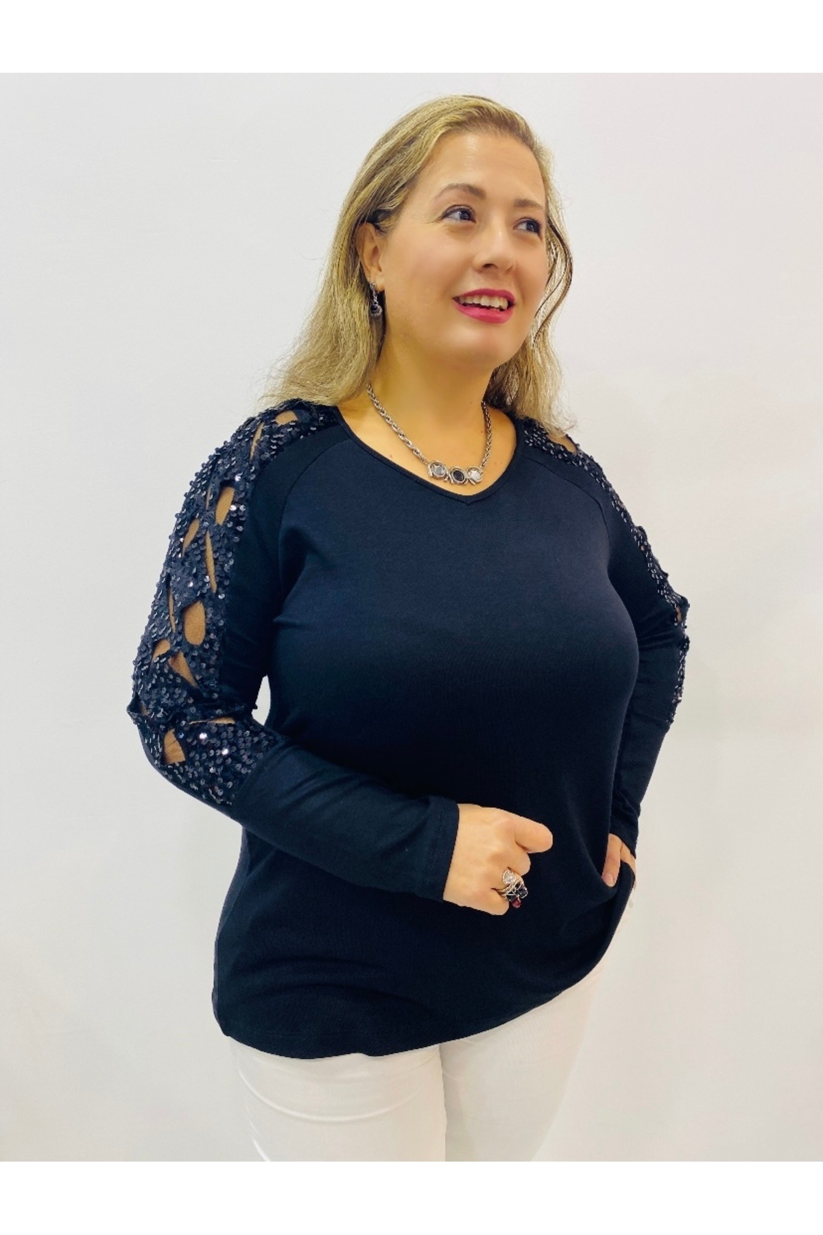 V YAKA Kolları Pencere kesim Pul PAYET Uzun kollu BLUZ Ürün kodu : 70 V YAKA Kolları Pencere kesim Pul PAYET Uzun kollu BLUZ Ürün kodu : 70 TYCB459BA4D1902B00