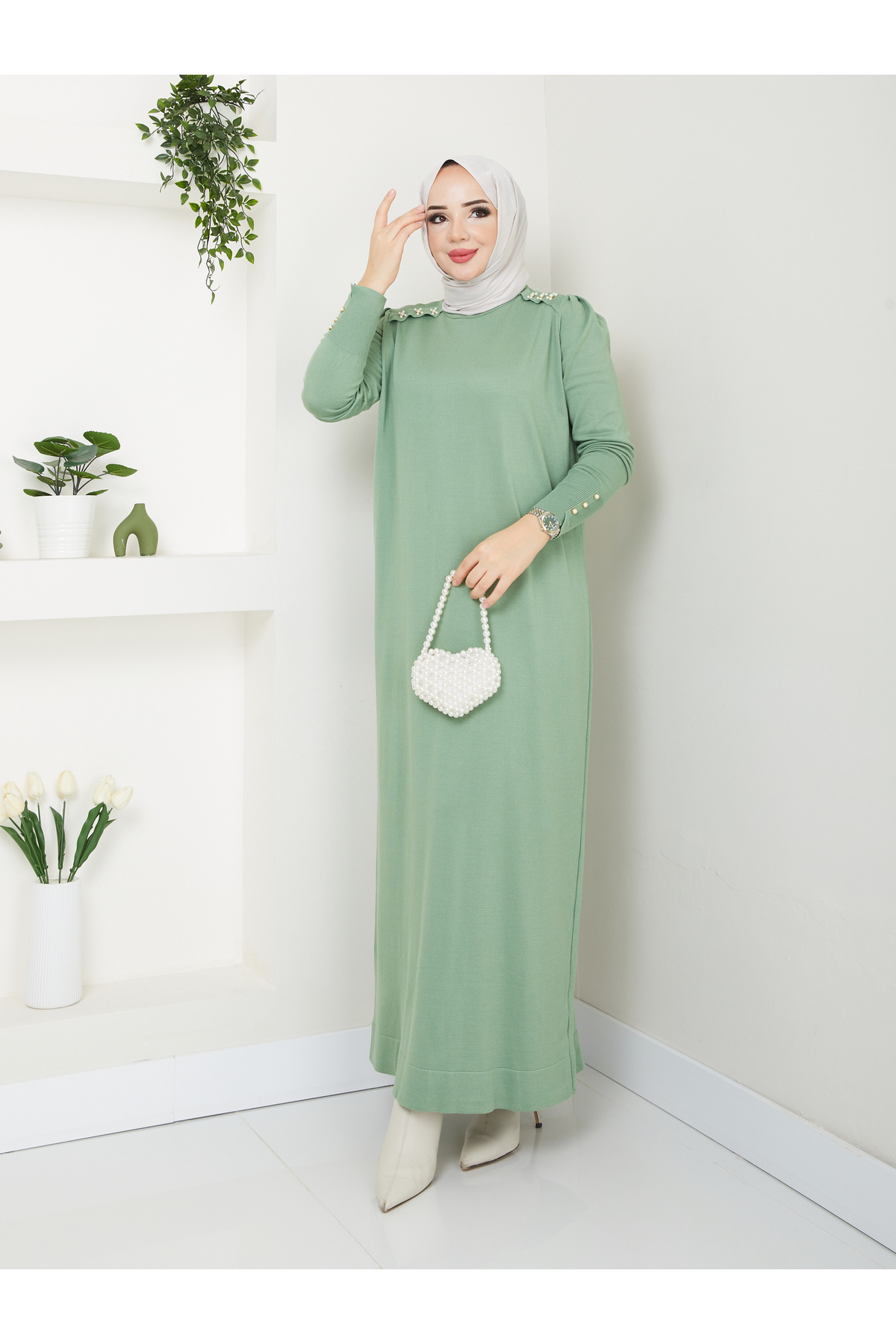Harika Merserize Tüylenmez Boncuk Detaylı Elbise Harika Merserize Tüylenmez Boncuk Detaylı Elbise 7013 Standart
