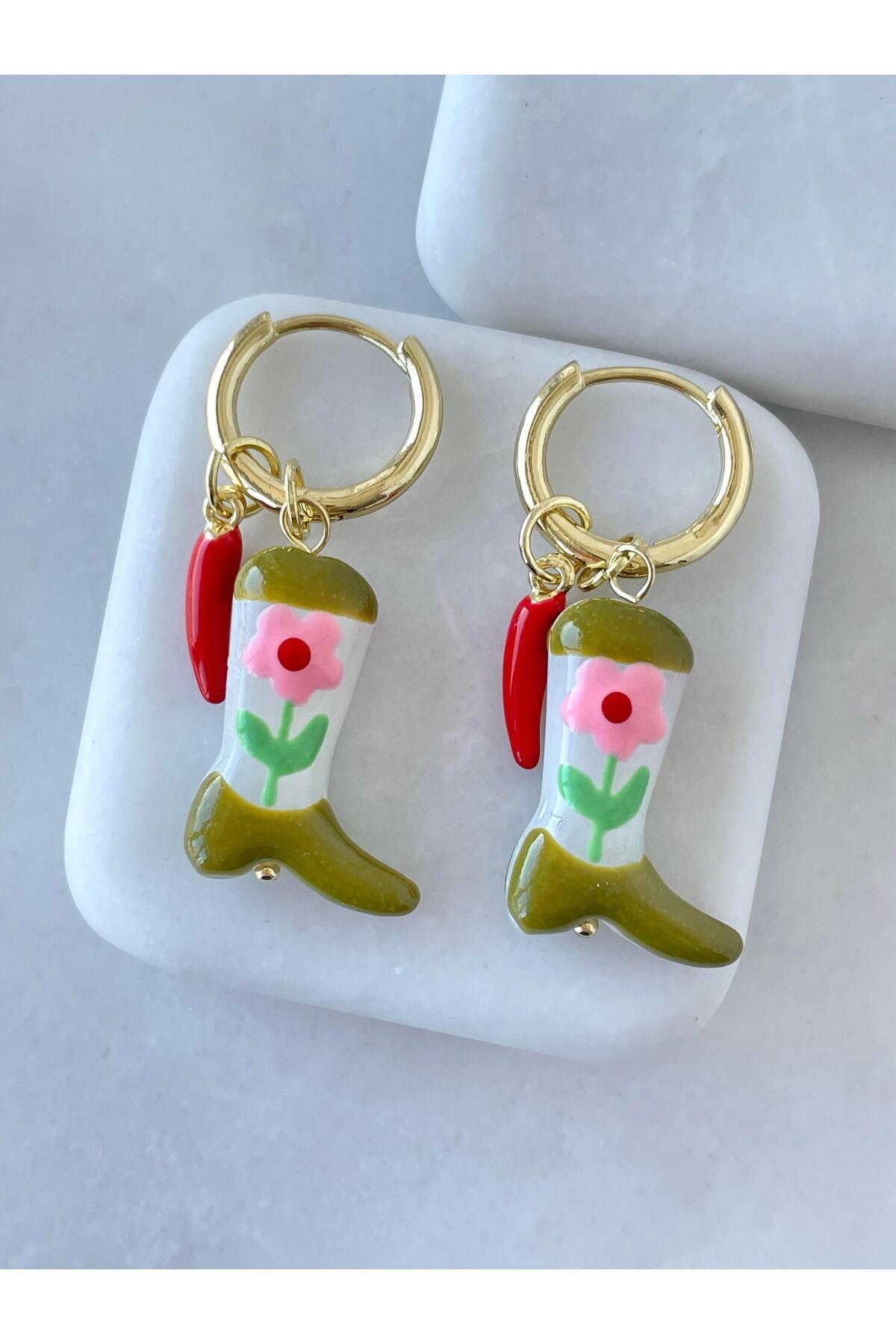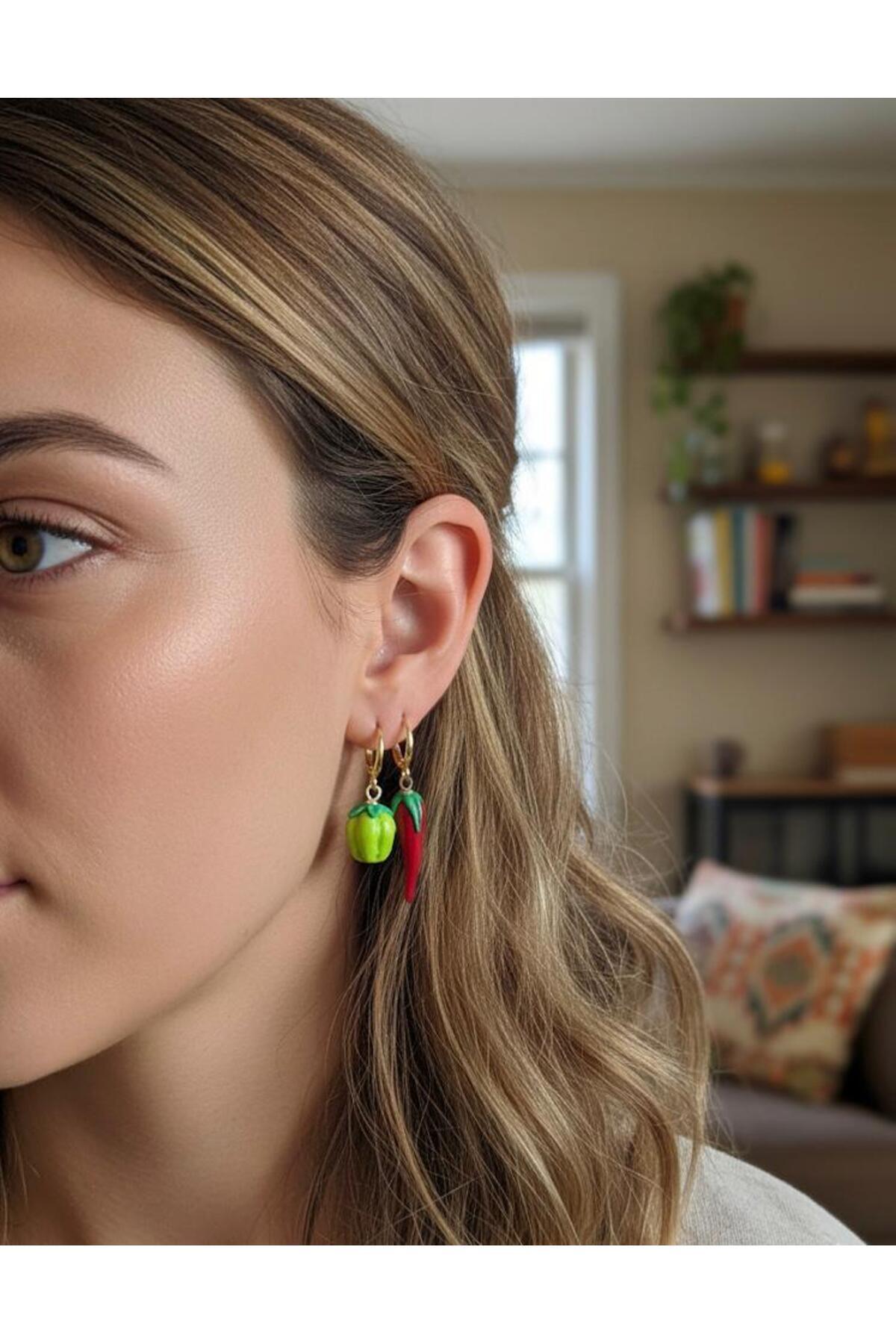 Tutku ve Koruma: Kırmızı Kalp & Biber Figürlü Çelik Halka Küpe Tutku ve Koruma: Kırmızı Kalp & Biber Figürlü Çelik Halka Küpe TYJS445 S