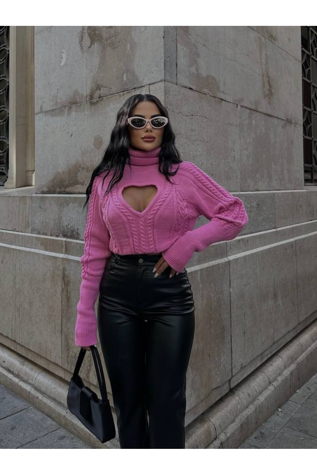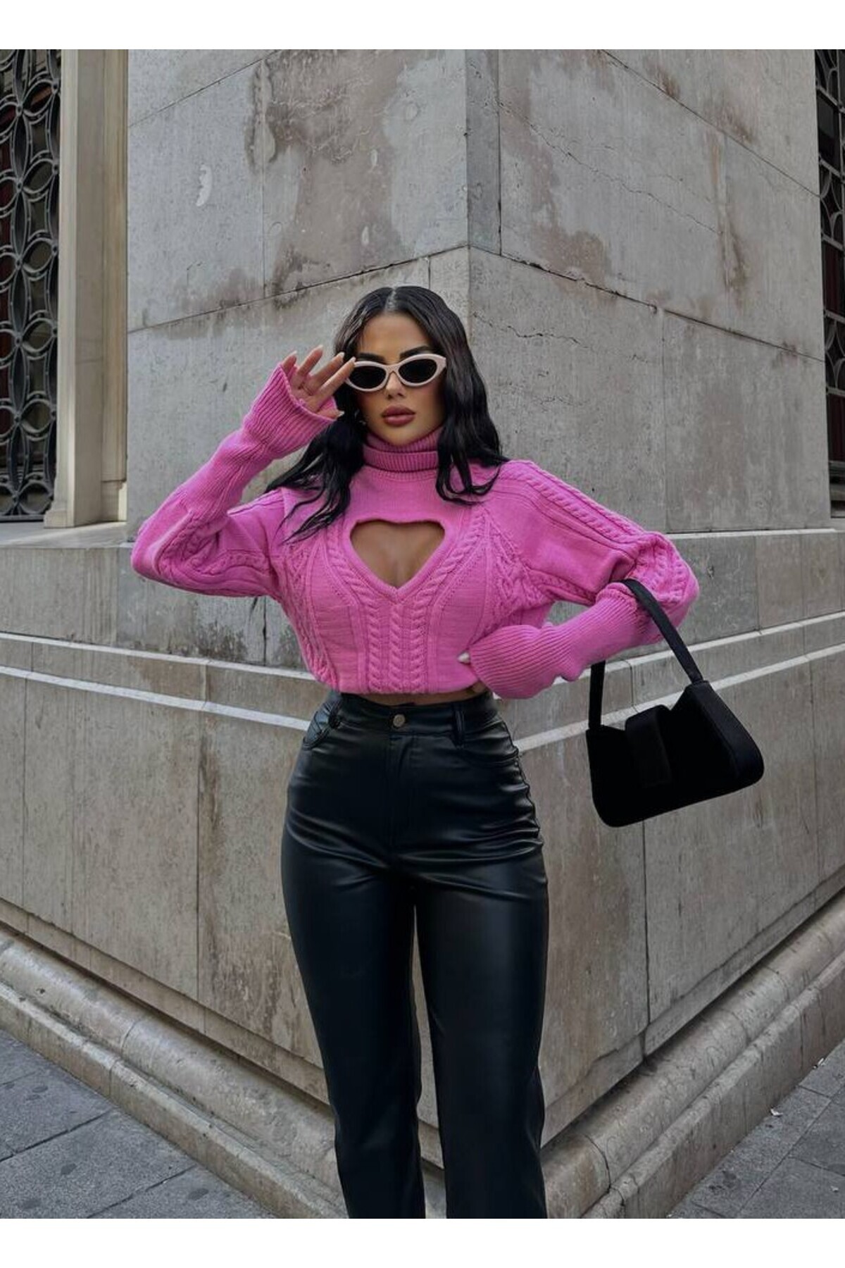 Kadın Önü Kalpli Boğazlı Triko Crop Kazak Kadın Önü Kalpli Boğazlı Triko Crop Kazak 24151 Standart
