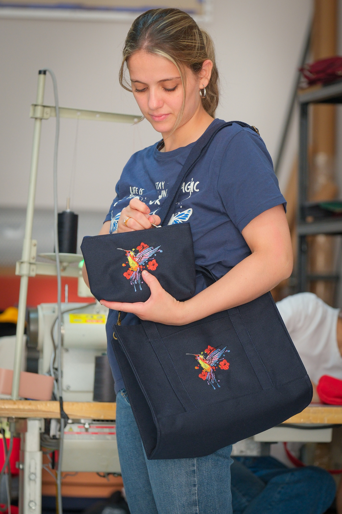 Butikmutik-Büyük Boy Arı Kuşu Nakışlı Lacivert Mumlu Kanvas TAKIM (Çanta ve Cüzdan) Butikmutik-Büyük Boy Arı Kuşu Nakışlı Lacivert Mumlu Kanvas TAKIM (Çanta ve Cüzdan) lacivertTAKIMmumluARIKUŞU 35 x 25