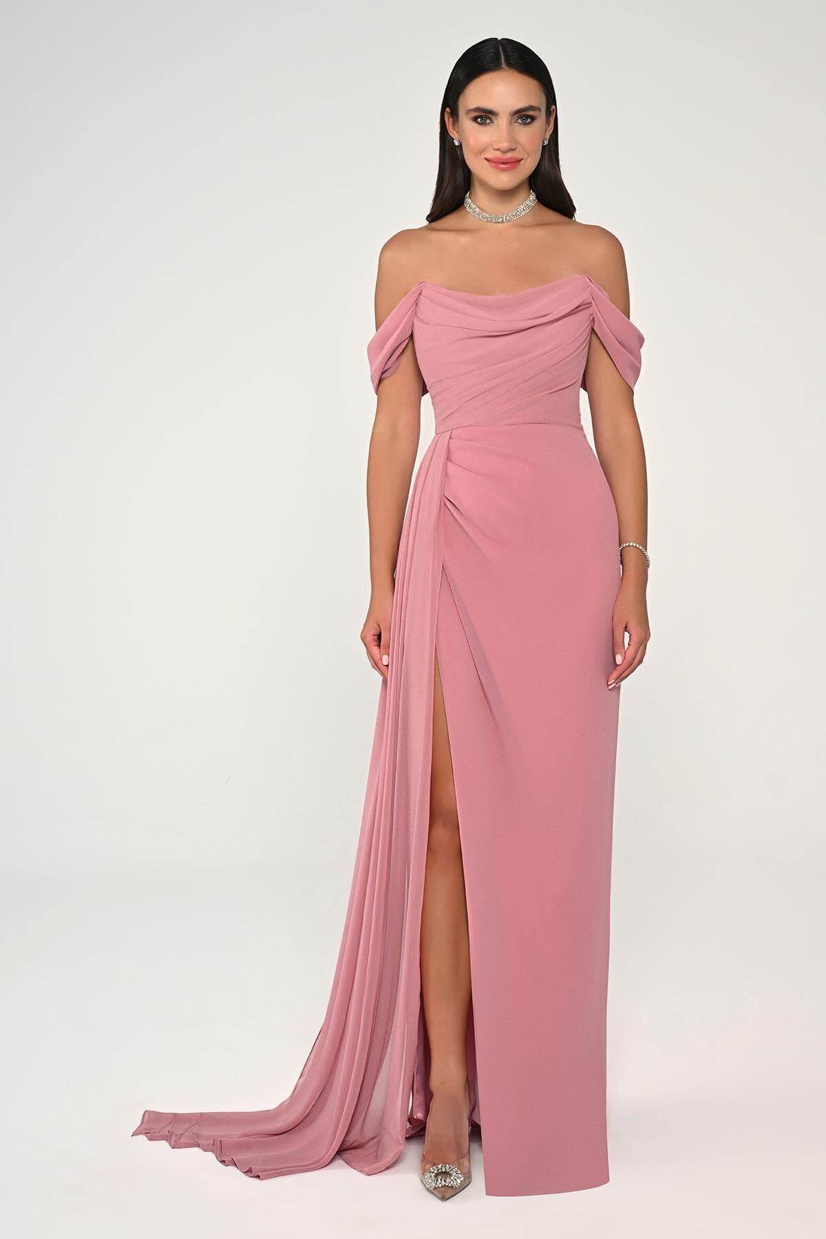 - Yıkama Talimatı : Düşük Omuz Yandan Yırtmaçlı Şifon Uzun Elbise