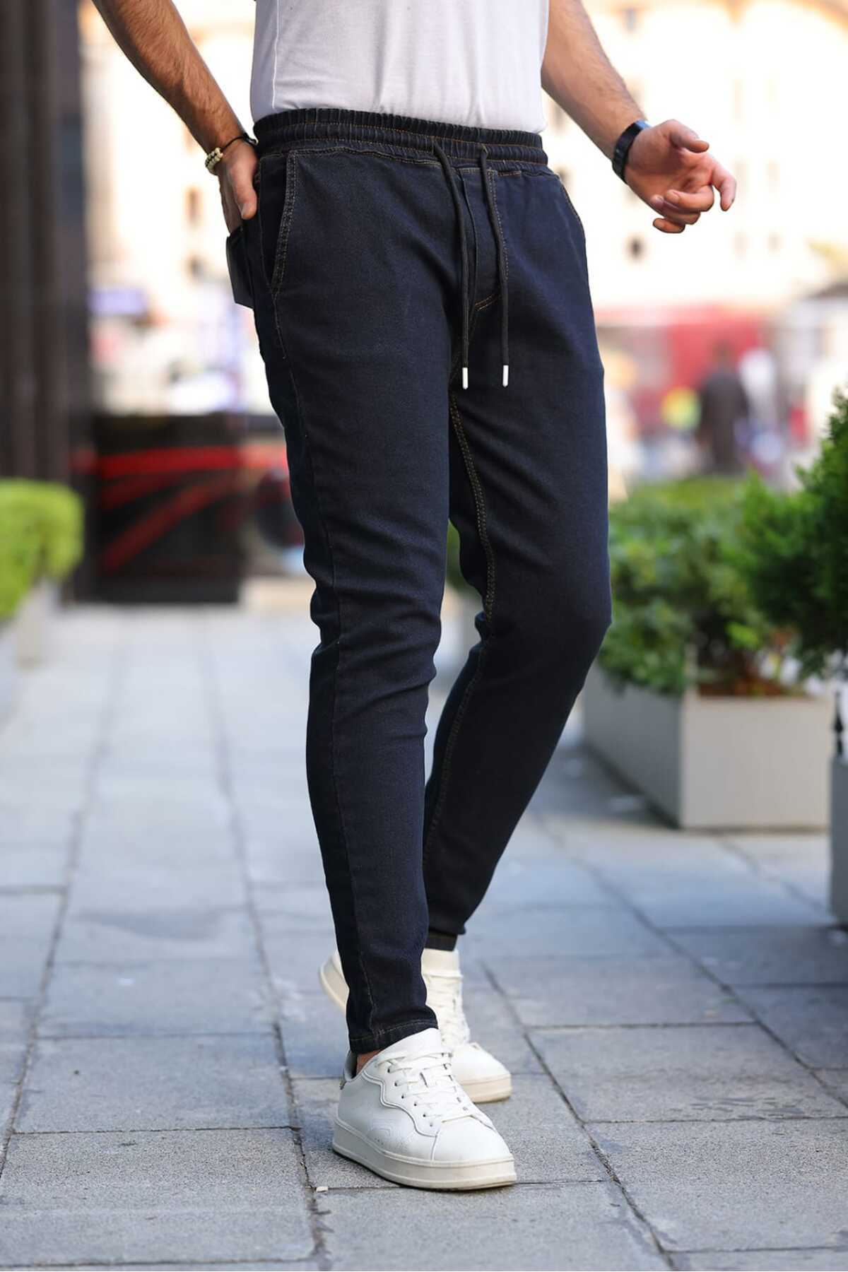 Erkek Lastikli Rahat Kalıp Kot Pantalon Orta Mavi Erkek Lastikli Rahat Kalıp Kot Pantalon Orta Mavi L4450 38