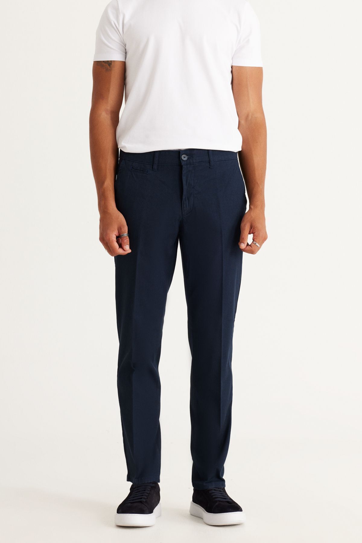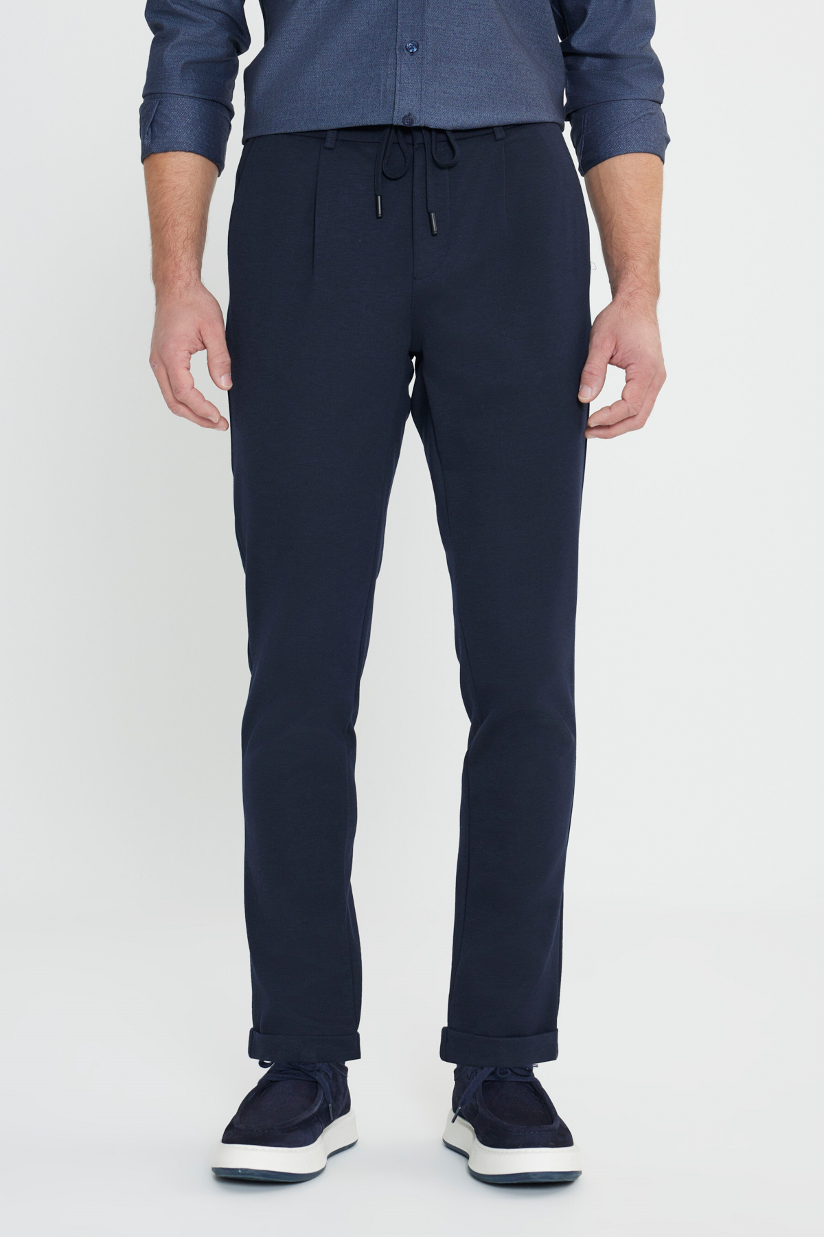 Erkek Lacivert Comfort Fit Rahat Kesim Yan Cepli Desenli Beli Lastikli Pantolon Erkek Lacivert Comfort Fit Rahat Kesim Yan Cepli Desenli Beli Lastikli Pantolon YDA012420027 62